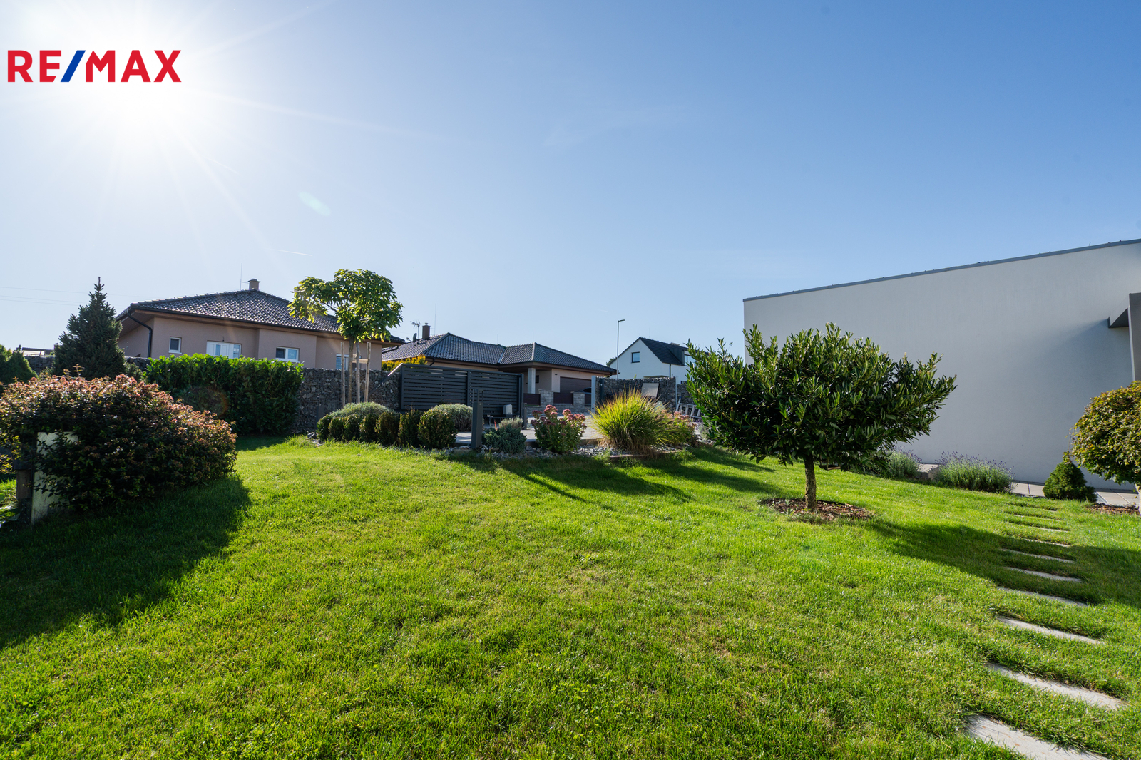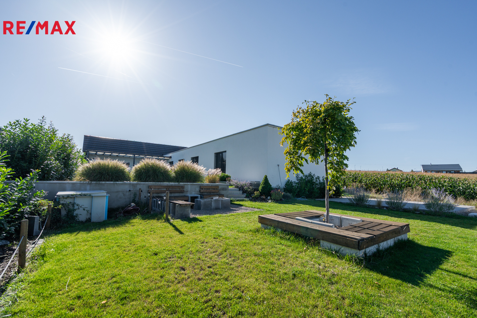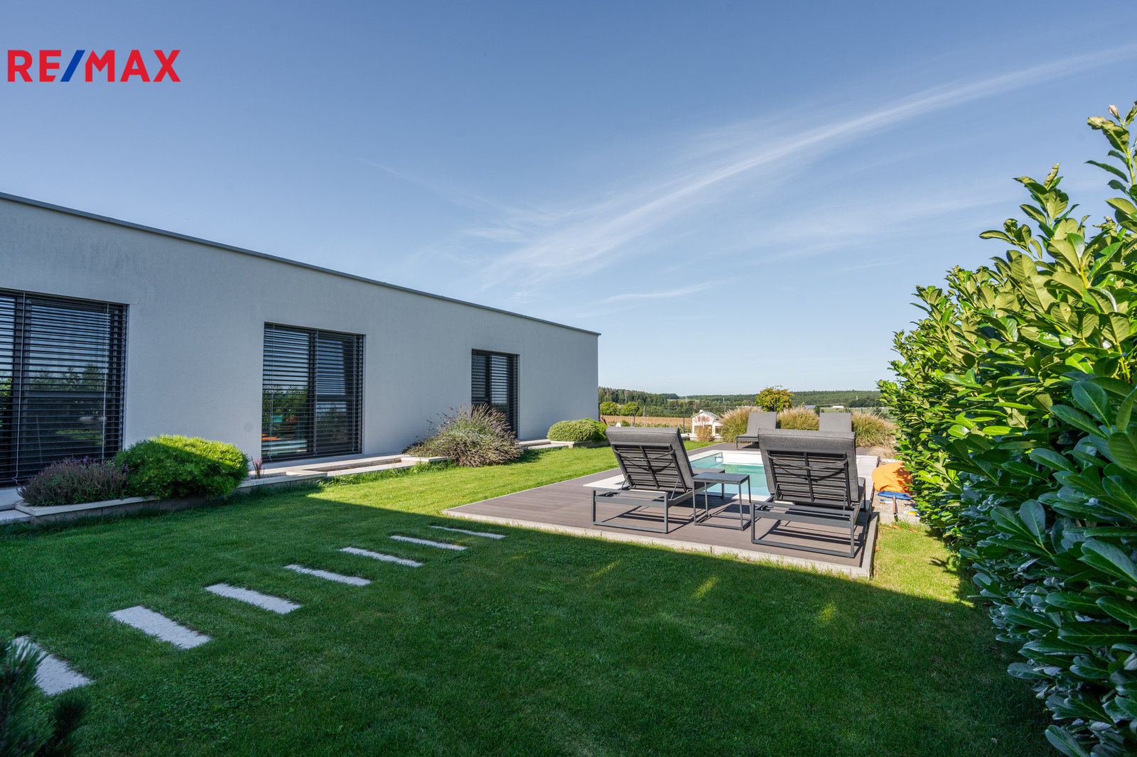 Pečlivě upravená zahrada plná zeleně nabízí klid i zábavu: bazén s terasou, venkovní ohniště a zákoutí pro odpočinek s rodinou i přáteli. Vysoké živé ploty a promyšlená výsadba zaručují maximální soukromí a pohodu od jara do podzimu.