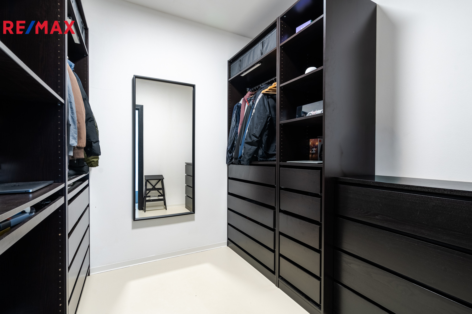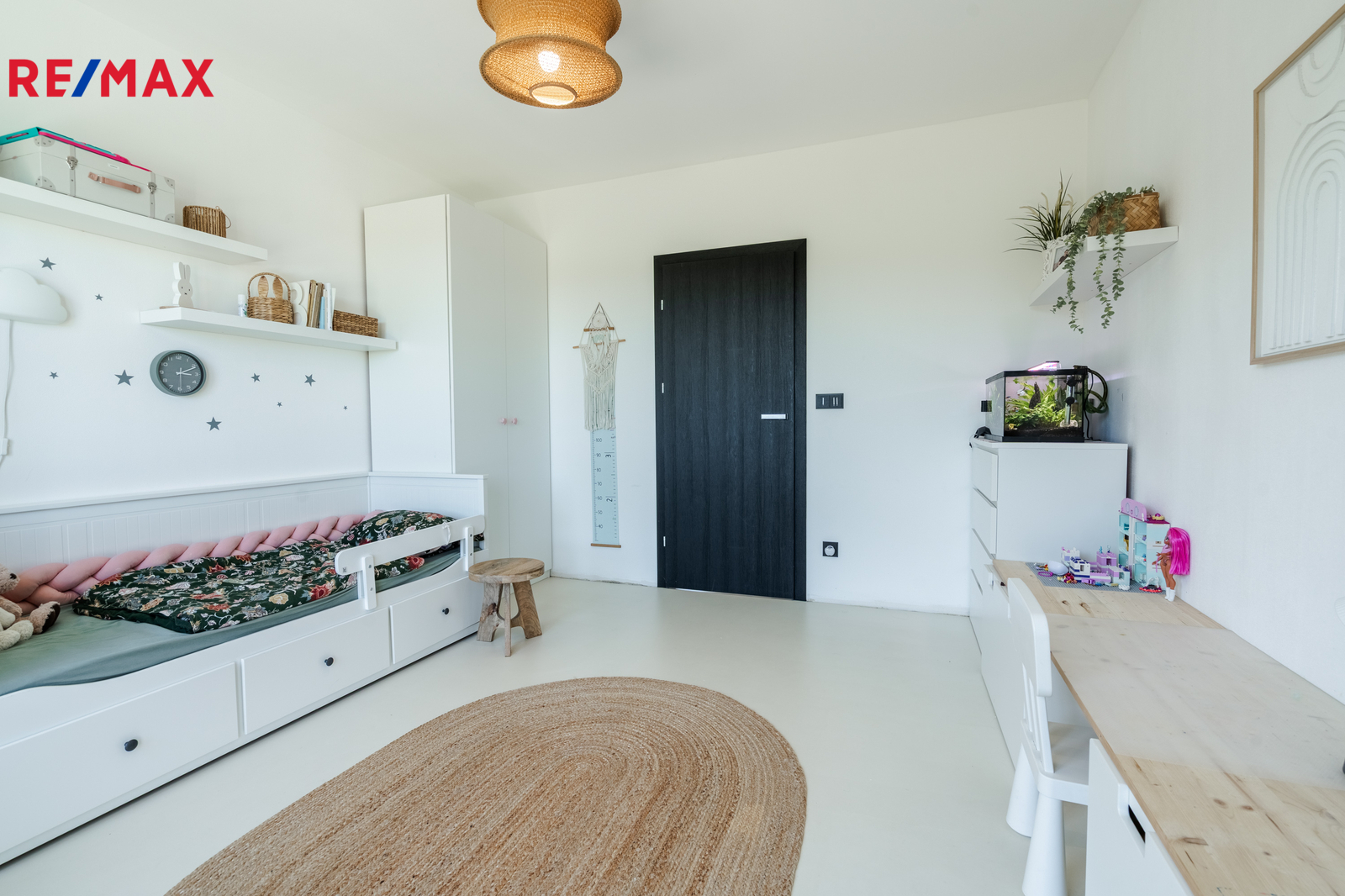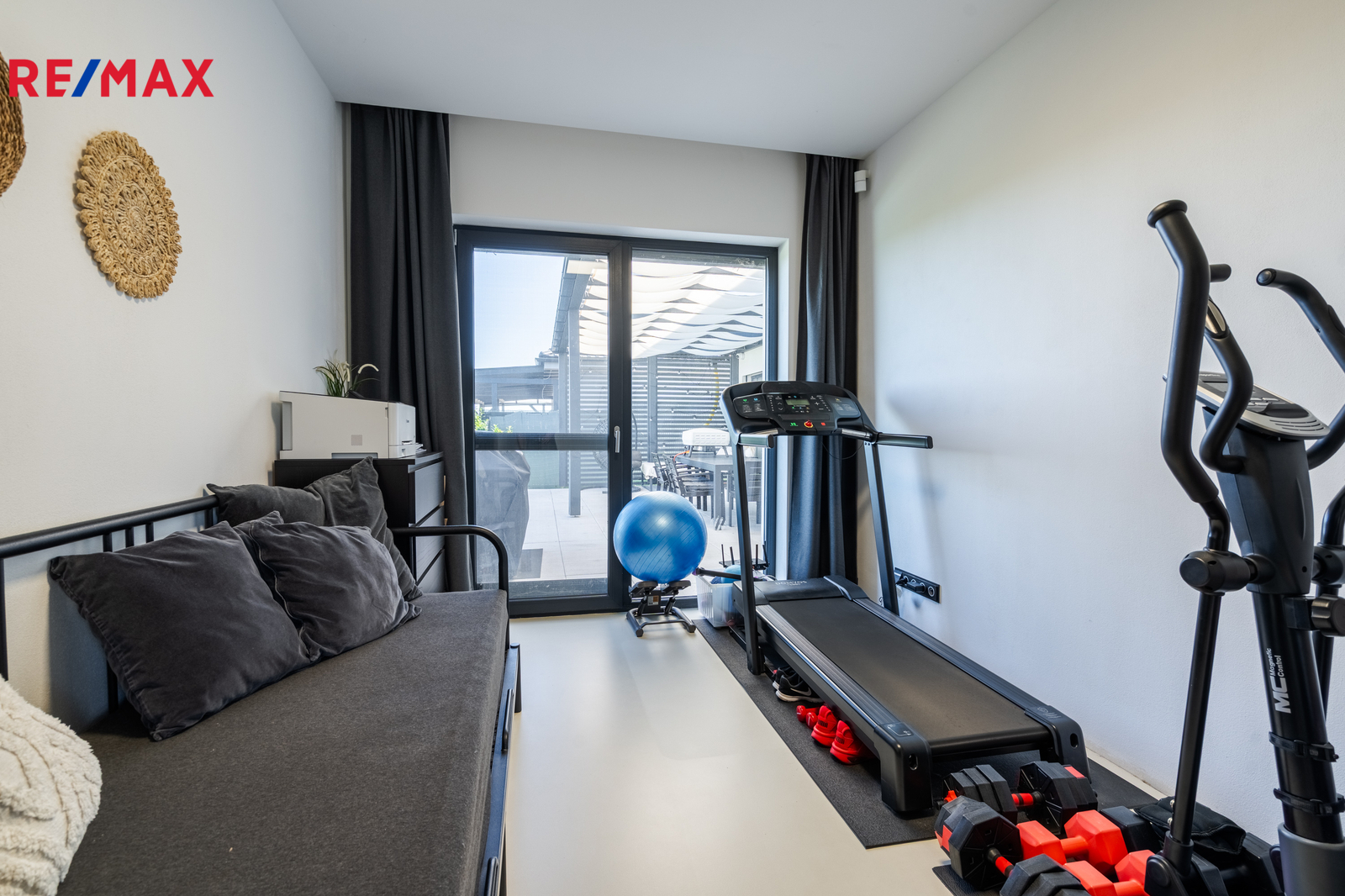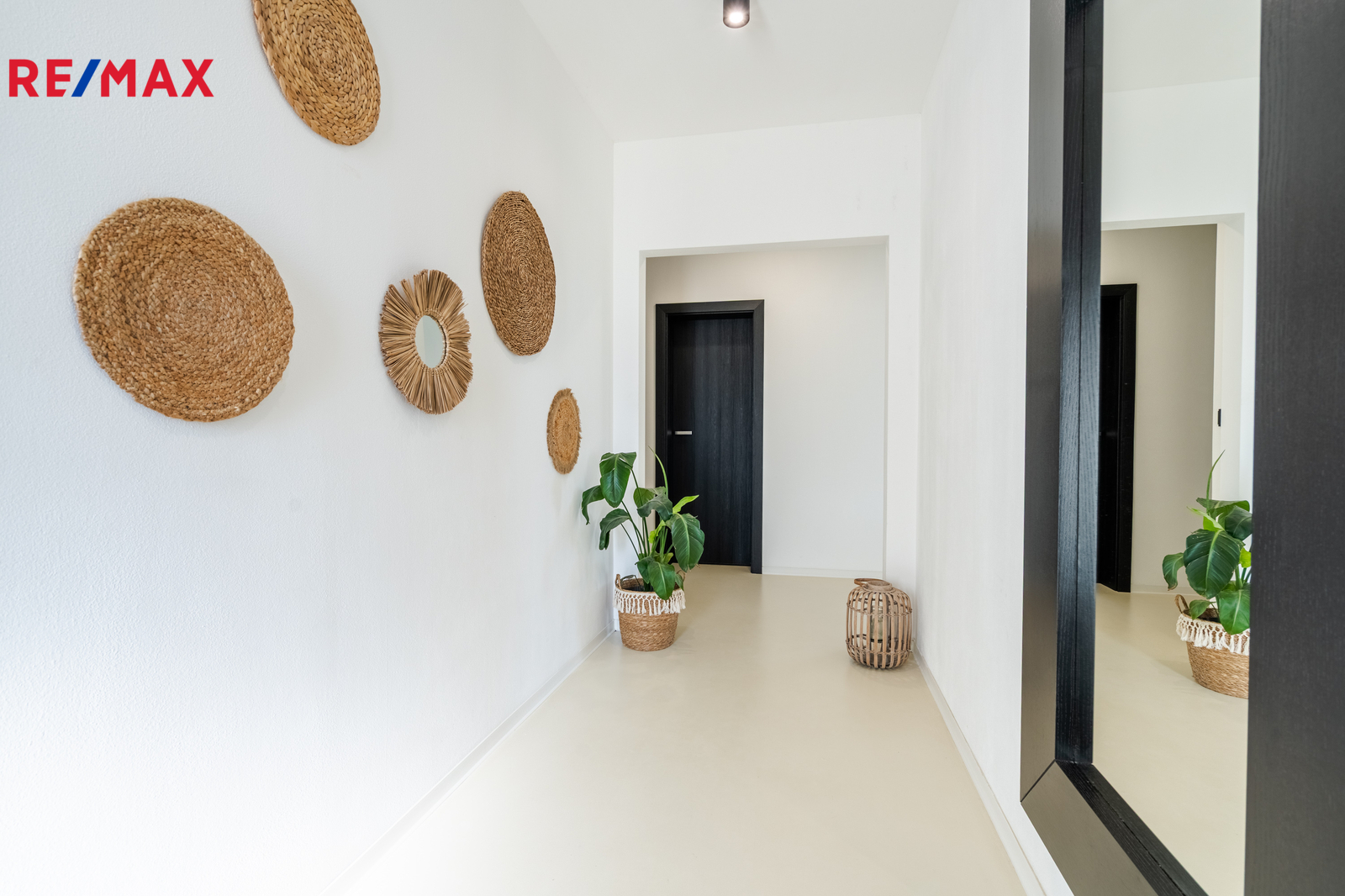 Dominantou domu je světlý obývací pokoj s kuchyní a jídelnou, odkud vedou velkoformátové posuvné dveře na krytou terasu. K dispozici jsou čtyři samostatné pokoje, dvě koupelny (jedna en-suite u ložnice), dvě toalety, dvě šatny u ložnice a další u vstupu, komora, technická místnost a garáž. Na pozemku jsou navíc tři parkovací místa a velký půdní prostor (cca 100 m²) pro úložné potřeby. Součástí domu je zastřešená pergola s terasou 50 m², ideální pro rodinné posezení.