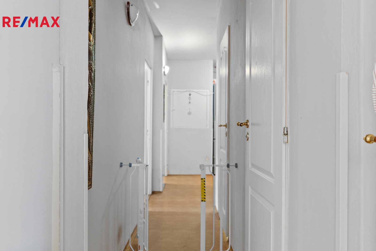 Součástí bytu je prostorná předsíň, komora, koupelna, samostatné WC a sklepní kóje v přízemí domu.