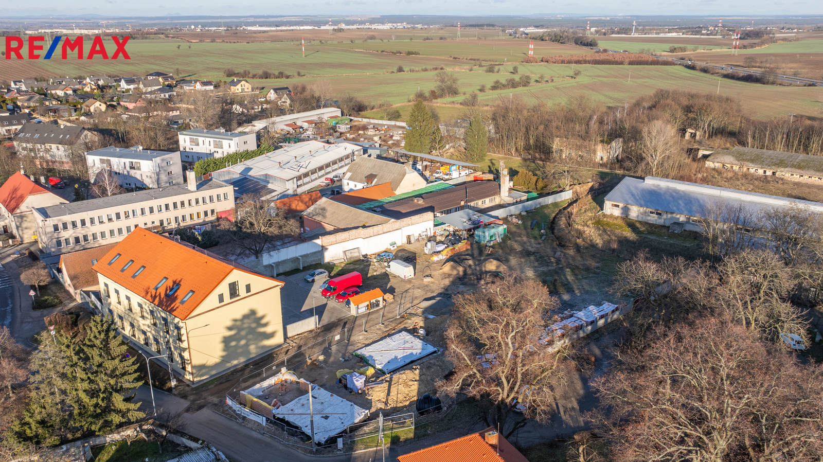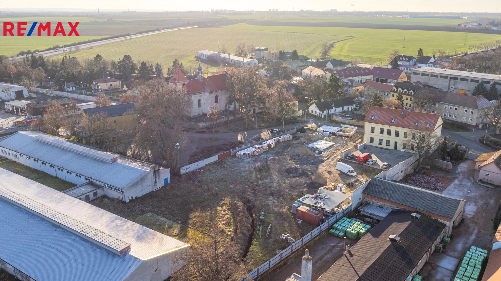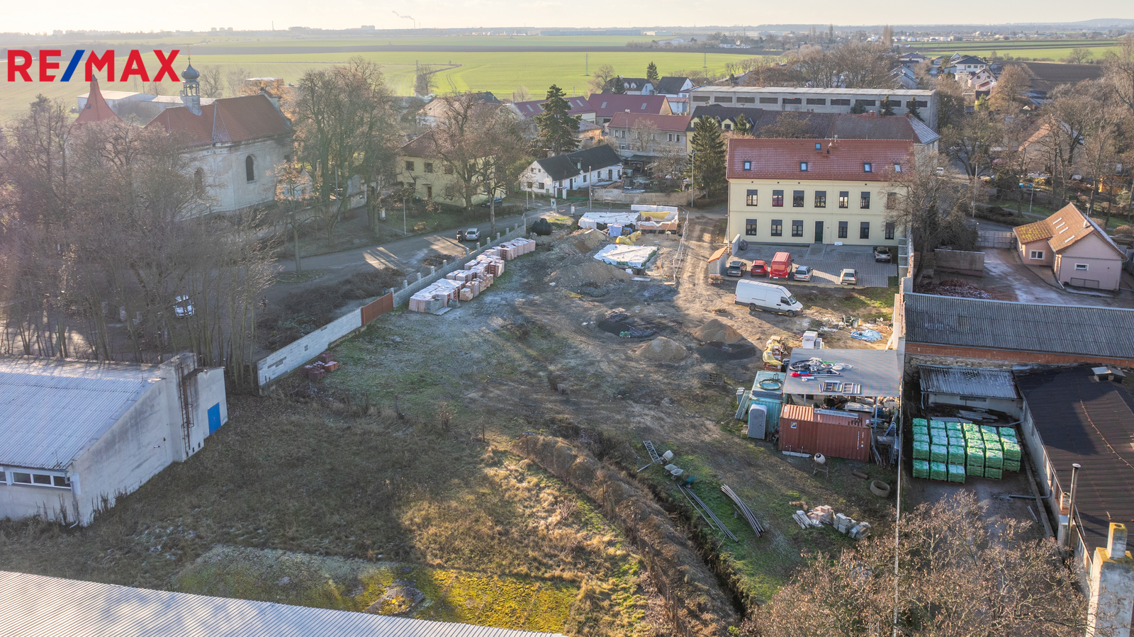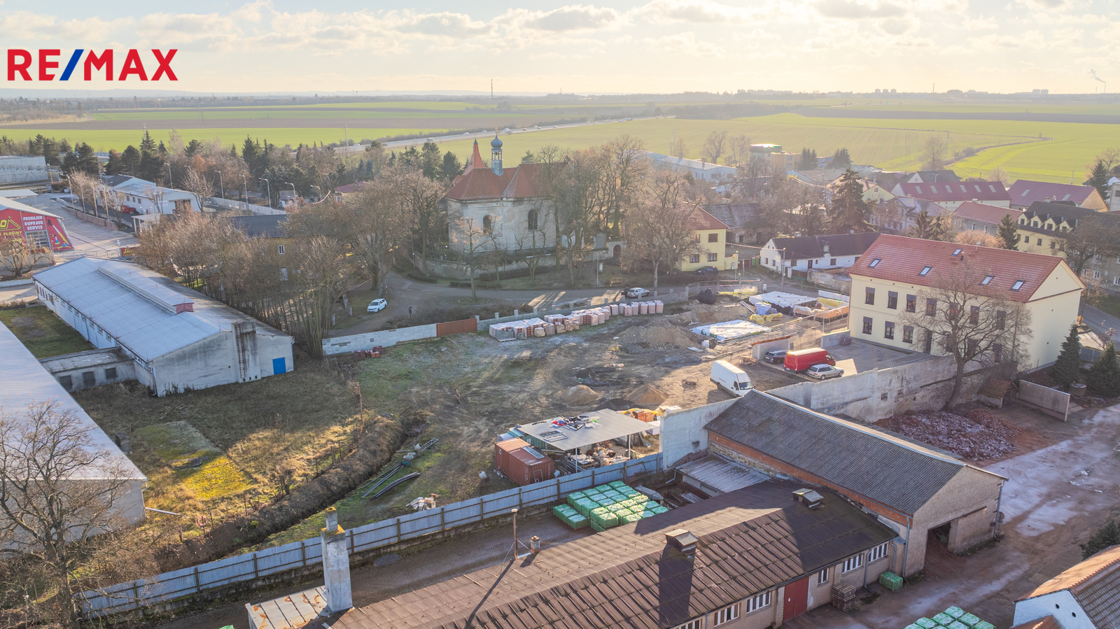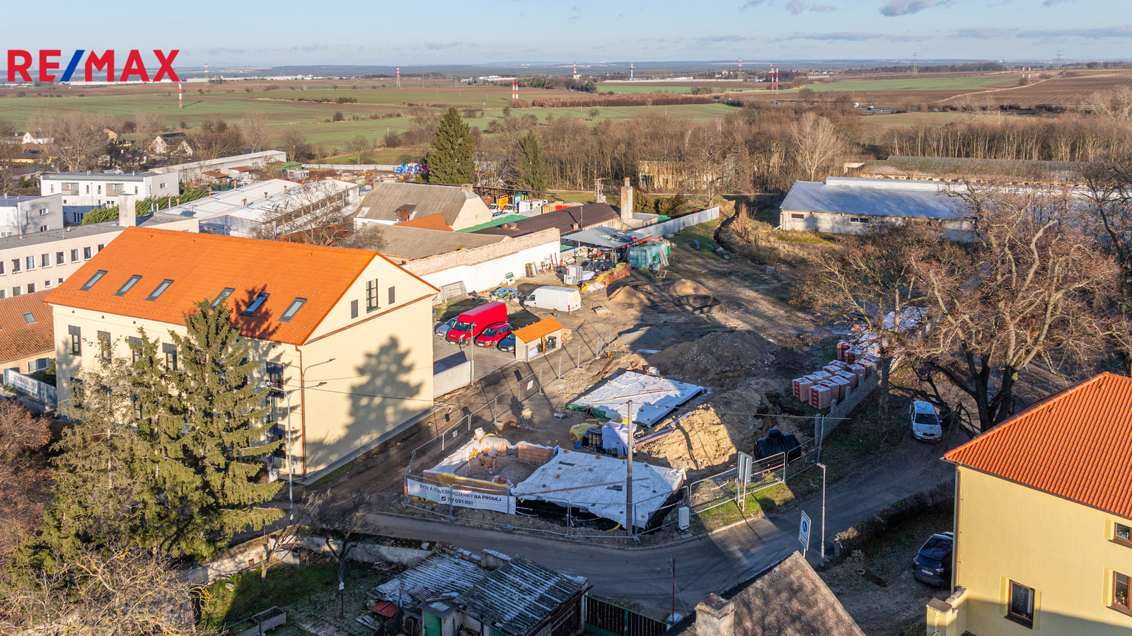 V těsné blízkosti pozemků je MŠ, basketbalové a dětské hřiště, obecní úřad, kostel a autobusová zastávka ze které se pohodlně dostanete za cca 20 minut do Letňan nebo na Černý most.