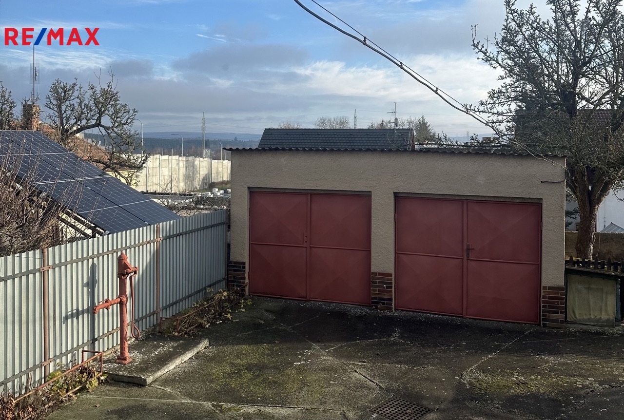 Na pozemku jsou dvě zděné garáže a jedno parkovací místo před domem, což zajišťuje dostatek prostoru pro vozidla.