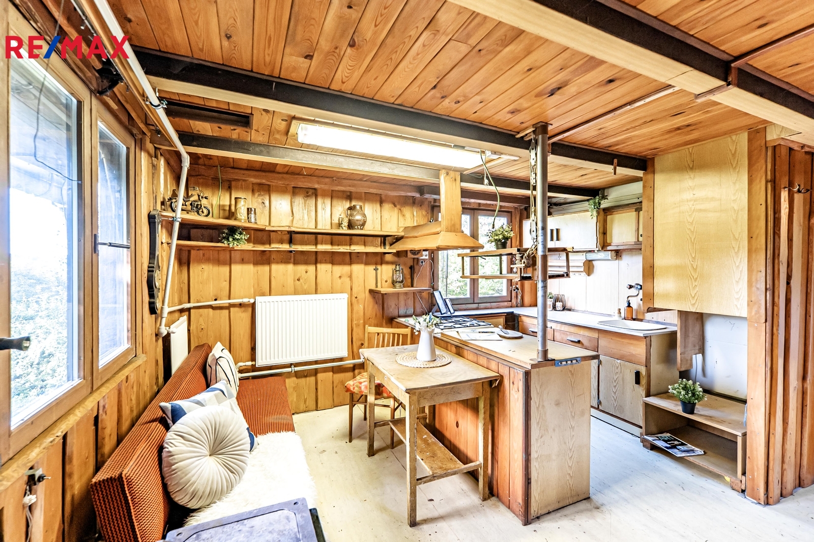Na pozemku se aktuálně nachází rekreační chata o dispozici 2+kk (58 m²) se dvěma nadzemními a jedním podzemním podlažím (dílna). V přízemí je kuchyně propojená s obývacím pokojem, koupelna s WC a sprchovým koutem. V patře najdete ložnici a druhé WC. Stav objektu odpovídá celkové rekonstrukci.