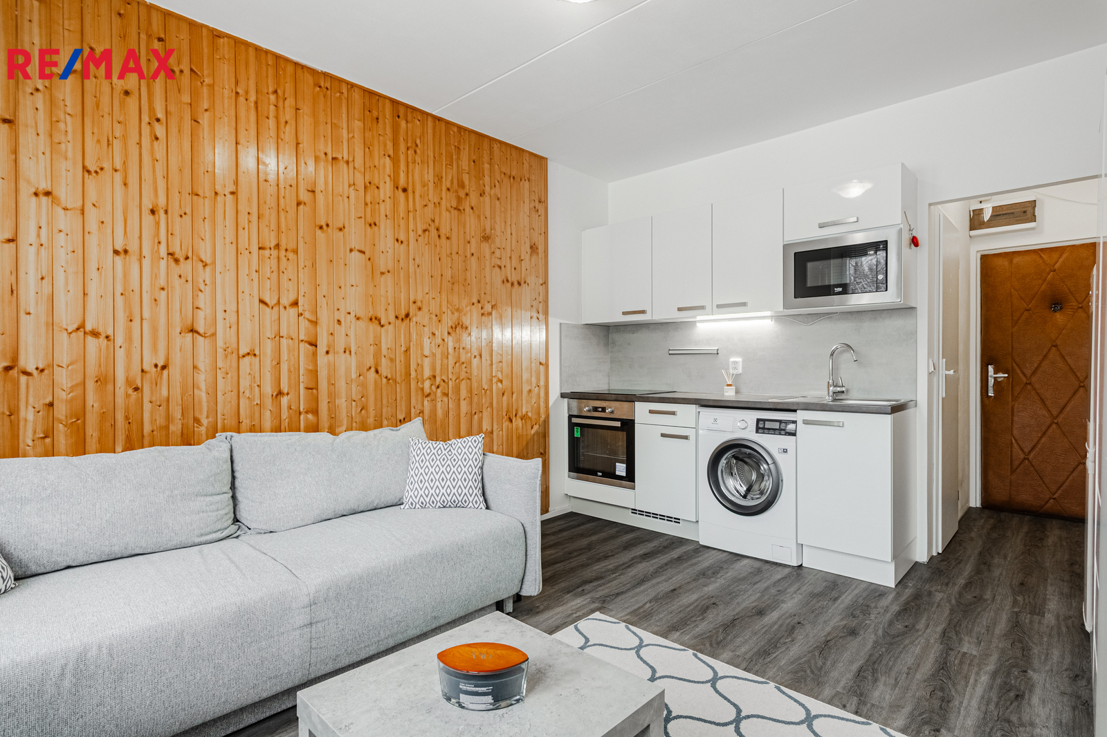 V zastoupení majitele nabízíme k pronájmu vybavený slunný byt 1+kk o rozloze 20 m² umístěném v 1. patře bytového domu v Říčanech. Byt je kompletně zařízený a připravený k okamžitému nastěhování. Vstupní část bytu tvoří praktická chodba s bezpečnostními dveřmi.