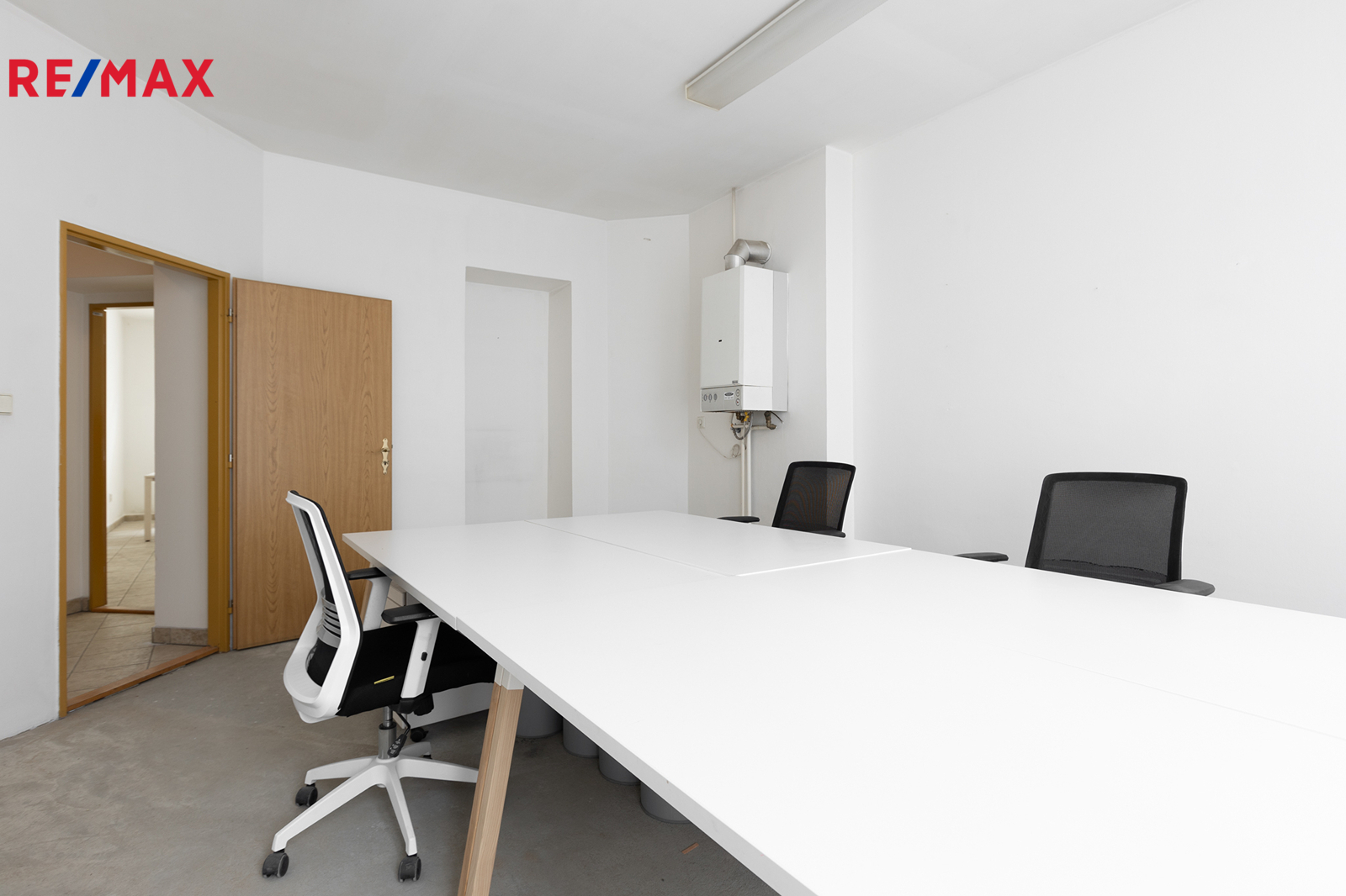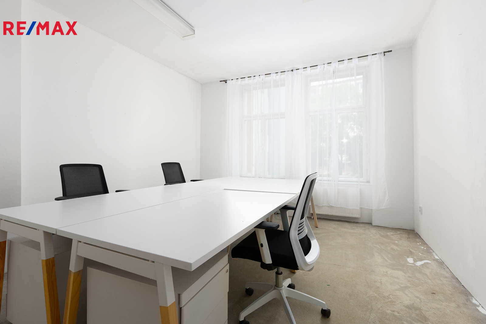 K prostoru náleží samostatný vstup přímo z ulice s výlohami, stejně jako vstup z vnitřní části domu, což zajišťuje flexibilitu a pohodlí pro zákazníky i zaměstnance.