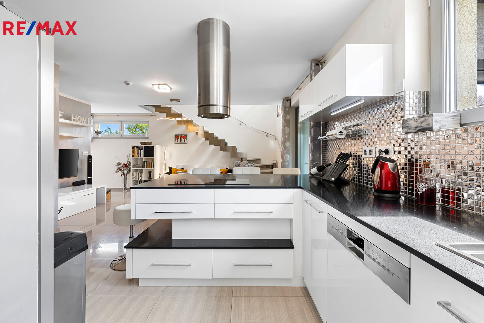 Představujeme moderní prostorný dům v hi-tech elegance stylu s vlastním wellness, garáží a zahradou. Dispozice interiéru je 6+kk s dvěma koupelnami pro komfortní bydlení. Dům rovněž nabízí možnost dvougeneračního využití nebo spojení bydlení s podnikáním.
