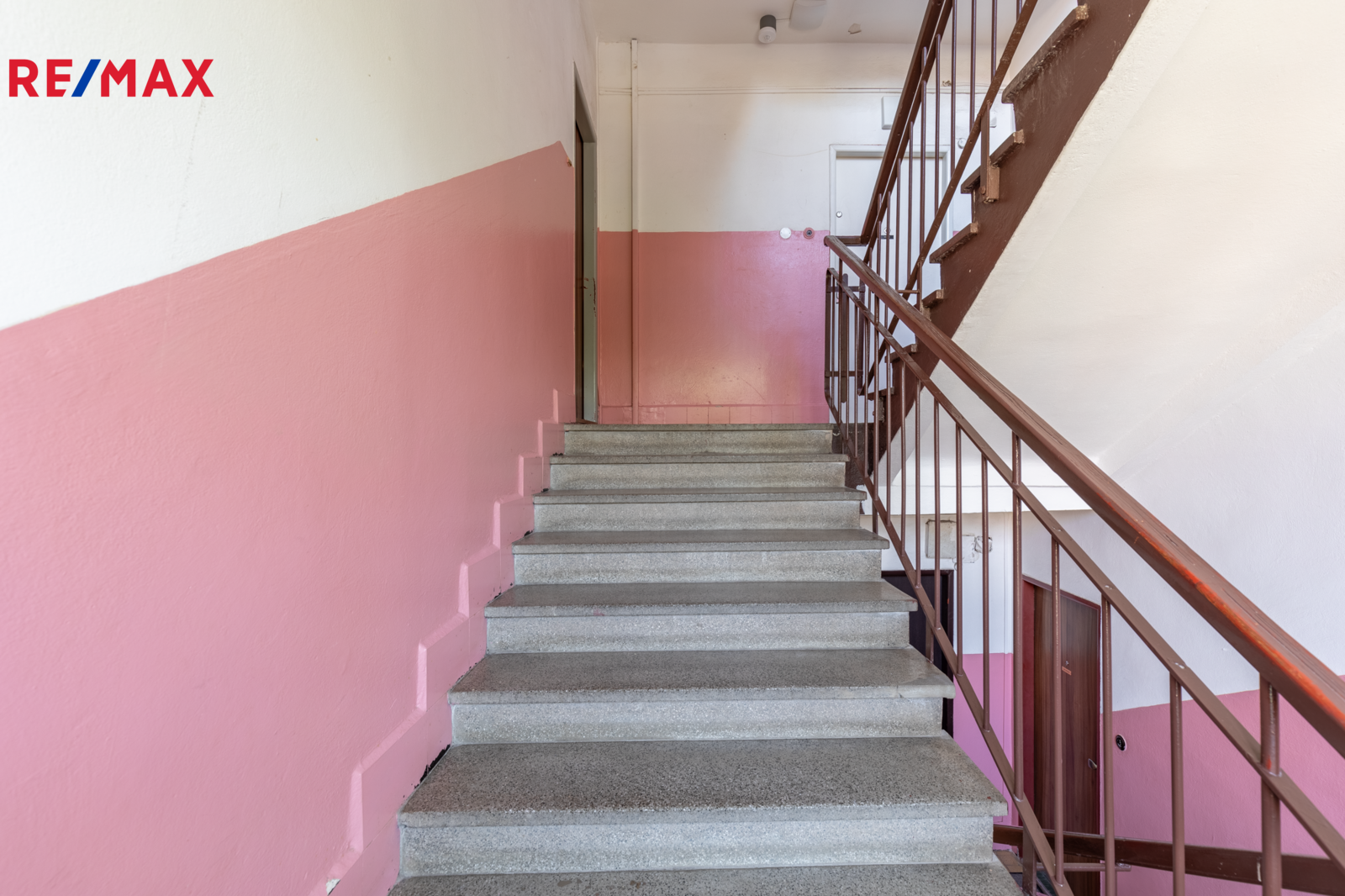 Díky příznivé orientaci oken je byt světlý a vzdušný. Široké schodiště s nízkými schody zajišťuje pohodlný přístup i bez výtahu.