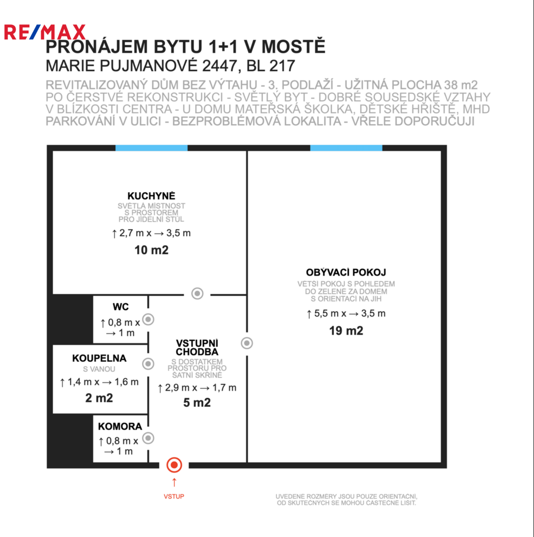 Nabídka podnájmu slunného družstevního bytu 1+1 s podlahovou plochou 36,85 m², situovaný ve 2. patře ( 3. NP) cihlového zatepleného domu v klidné a vyhledávané lokalitě města Most – ulice Marie Pujmanové.