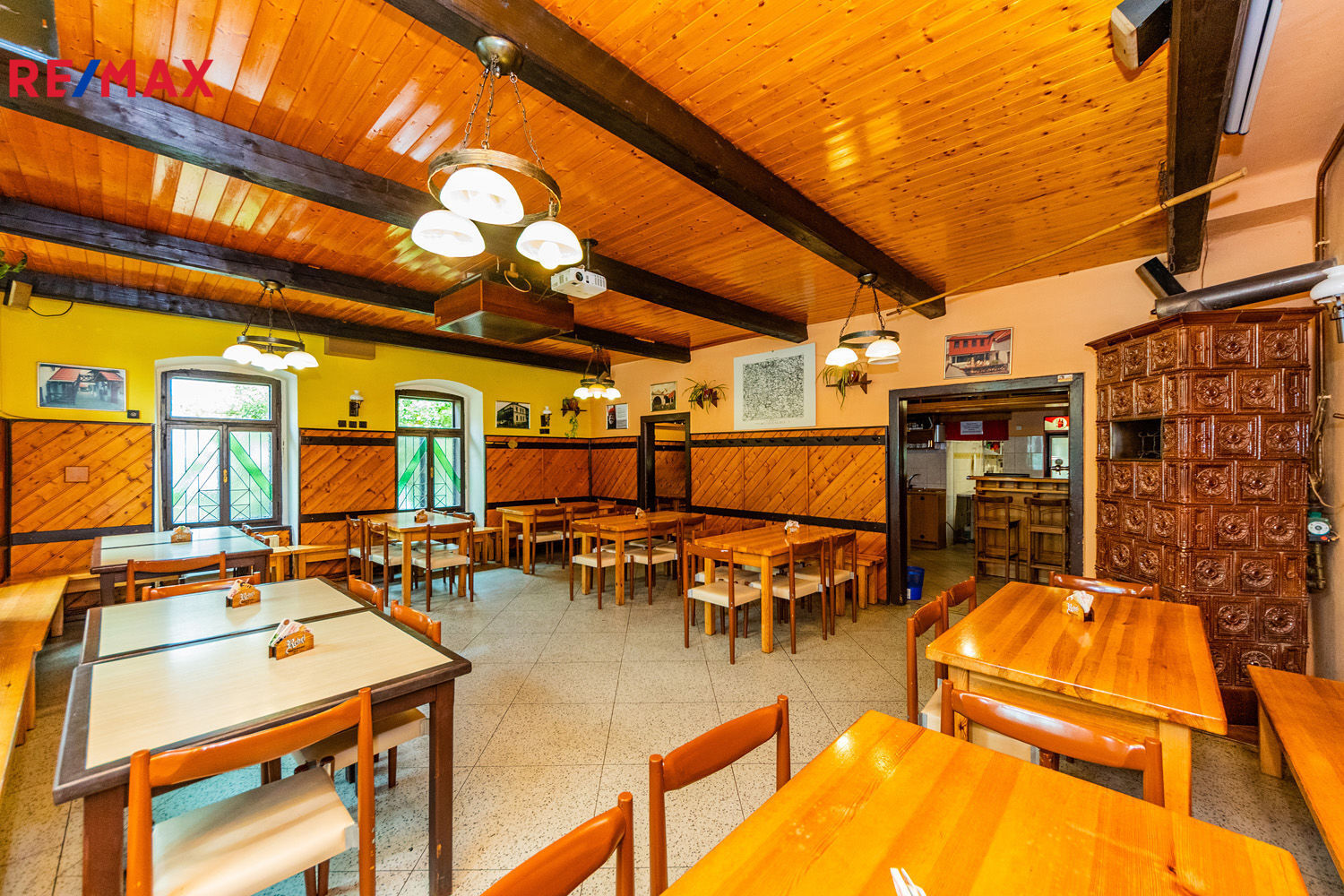 1.patro: - restaurace s 65.místy k sezení, barem z dubu. Kuchyně čistá, špinavá + suchý sklad a chladící box. Personální šatna + sklad alkoholu. WC - muži, ženy a pro personál.