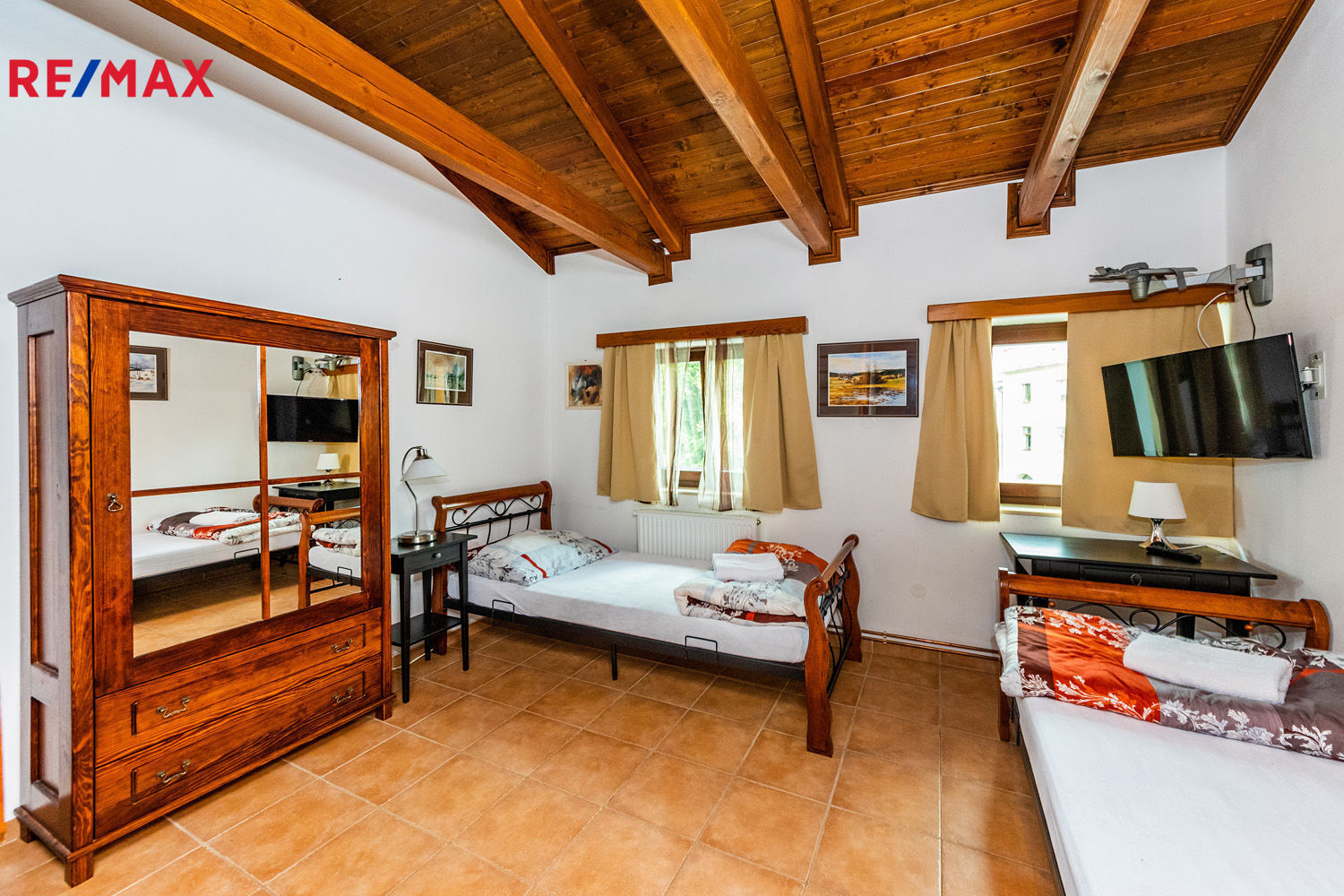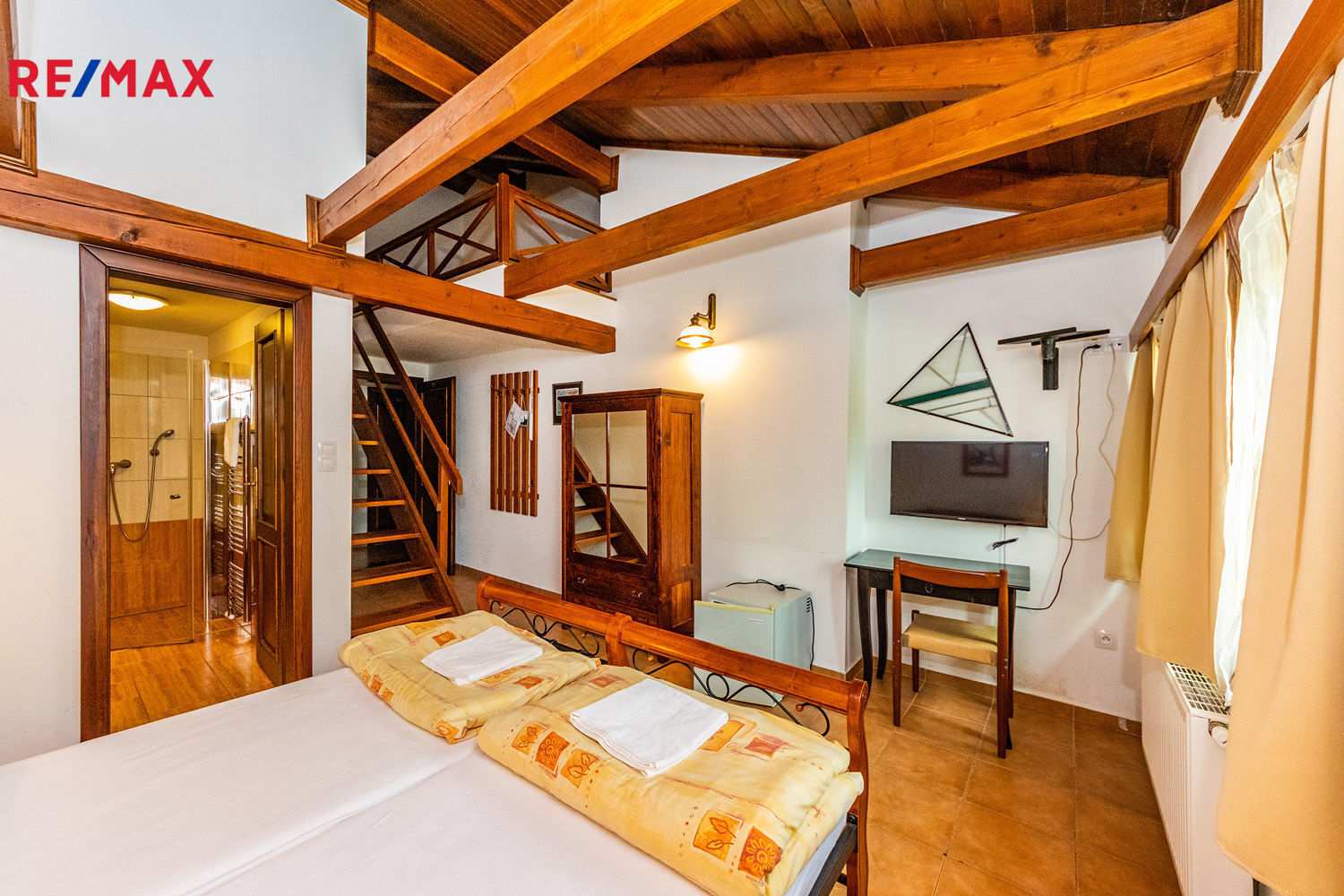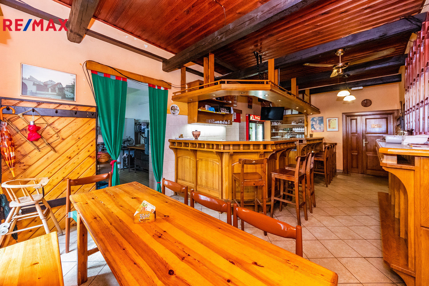Penzion disponuje užitnou plochou 960m2, zahrnuje 15 pokojů s koupelnami, restaurací s kuchyní, zahradní restaurací se samostatným výčepem, dostatečným zázemím (sklady, sklepy na víno i pivo) + garáží. Dále dvěma byty 2+1 a 3+1, ke kterým patří zimní zateplená zahrada (pavlač) a také teresa o výměře 67m2 s bazénem s technologií na slanou vodu.
