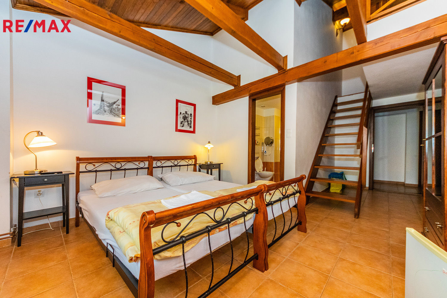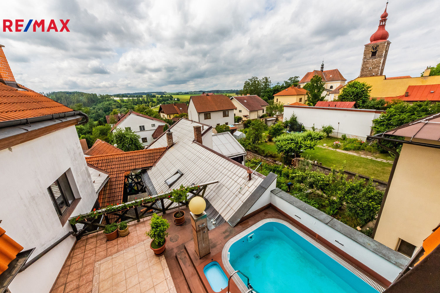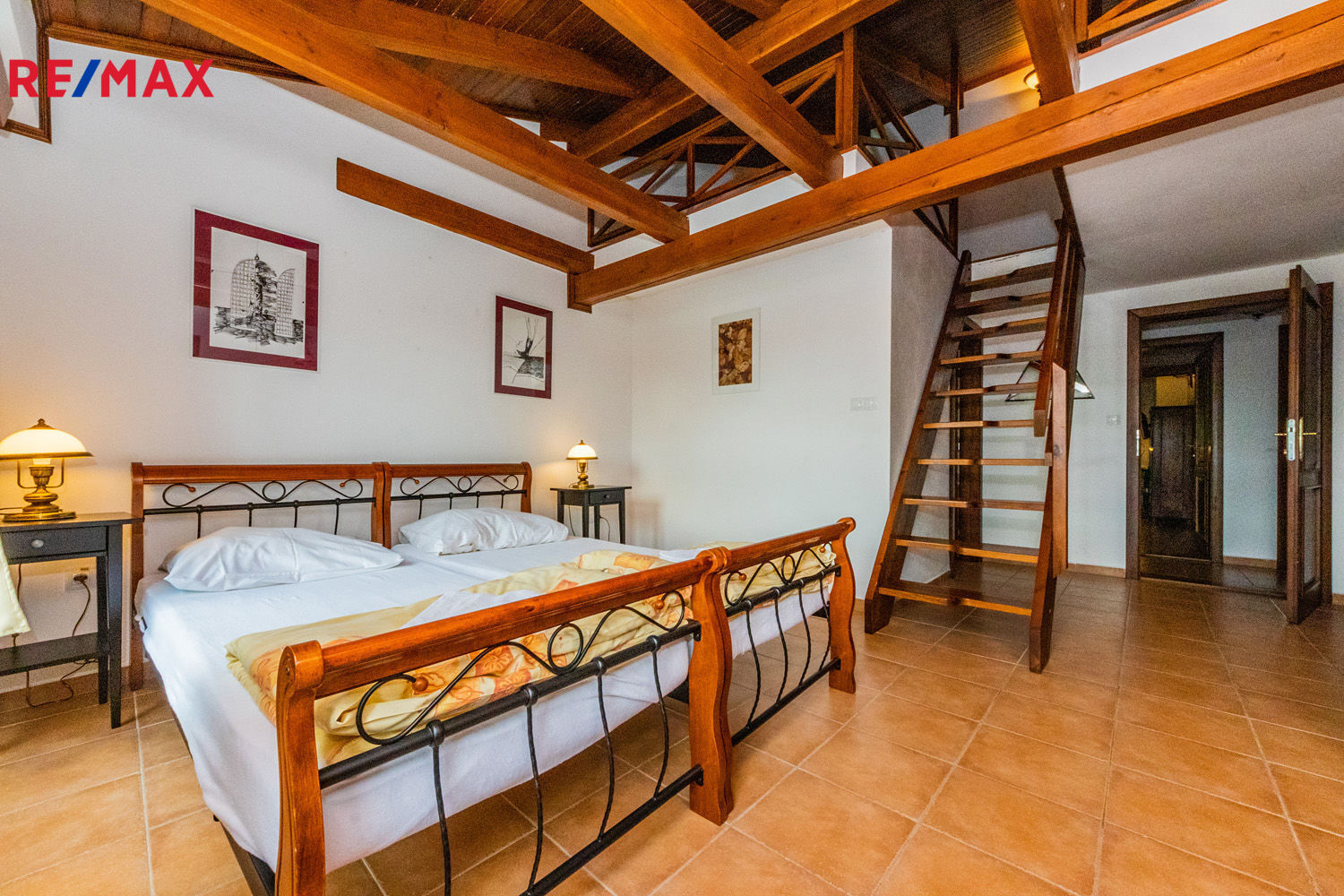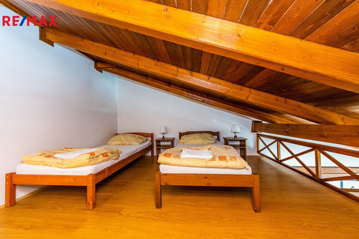 Penzion disponuje užitnou plochou 960m2, zahrnuje 15 pokojů s koupelnami, restaurací s kuchyní, zahradní restaurací se samostatným výčepem, dostatečným zázemím (sklady, sklepy na víno i pivo) + garáží. Dále dvěma byty 2+1 a 3+1, ke kterým patří zimní zateplená zahrada (pavlač) a také teresa o výměře 67m2 s bazénem s technologií na slanou vodu.