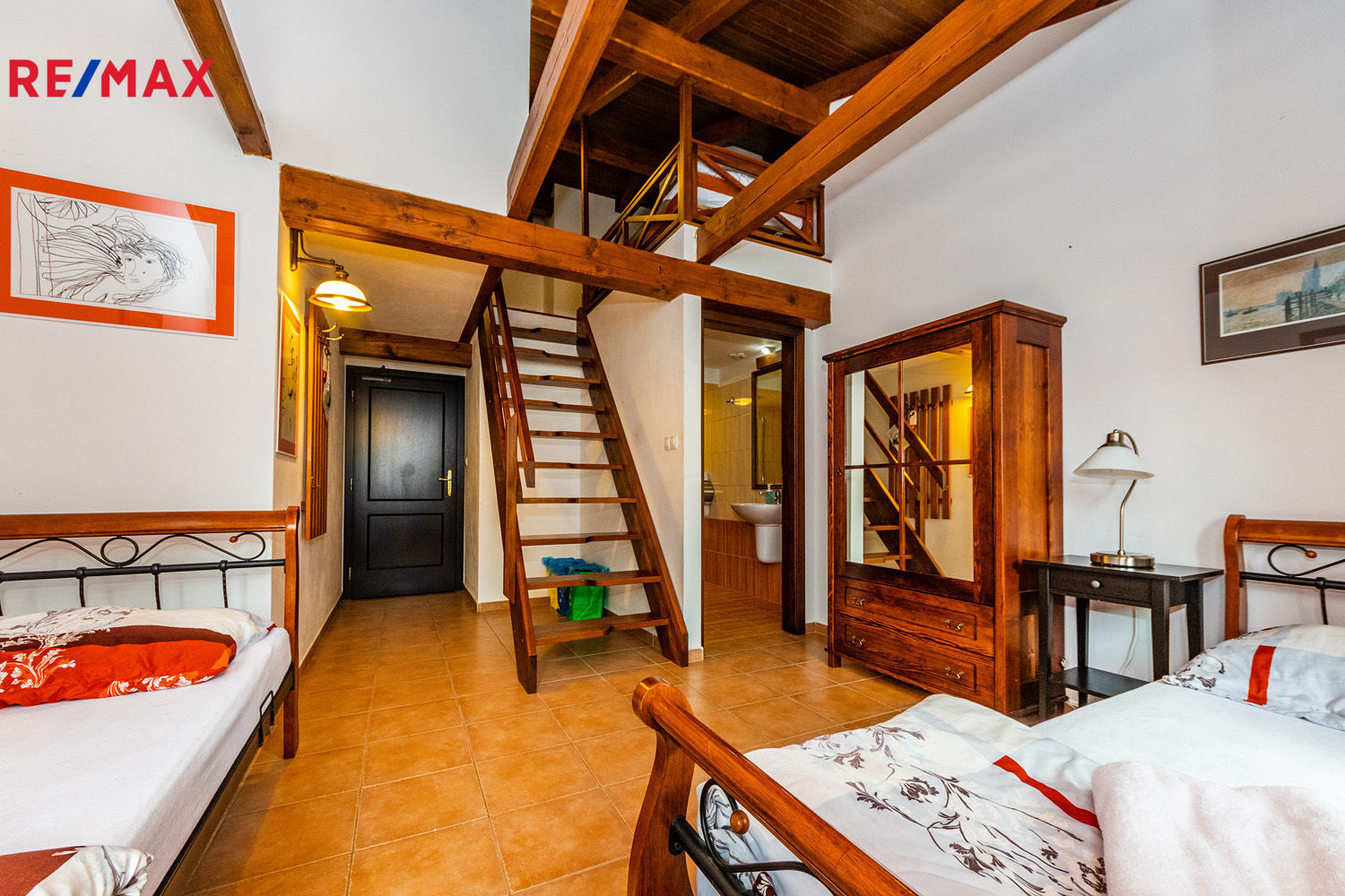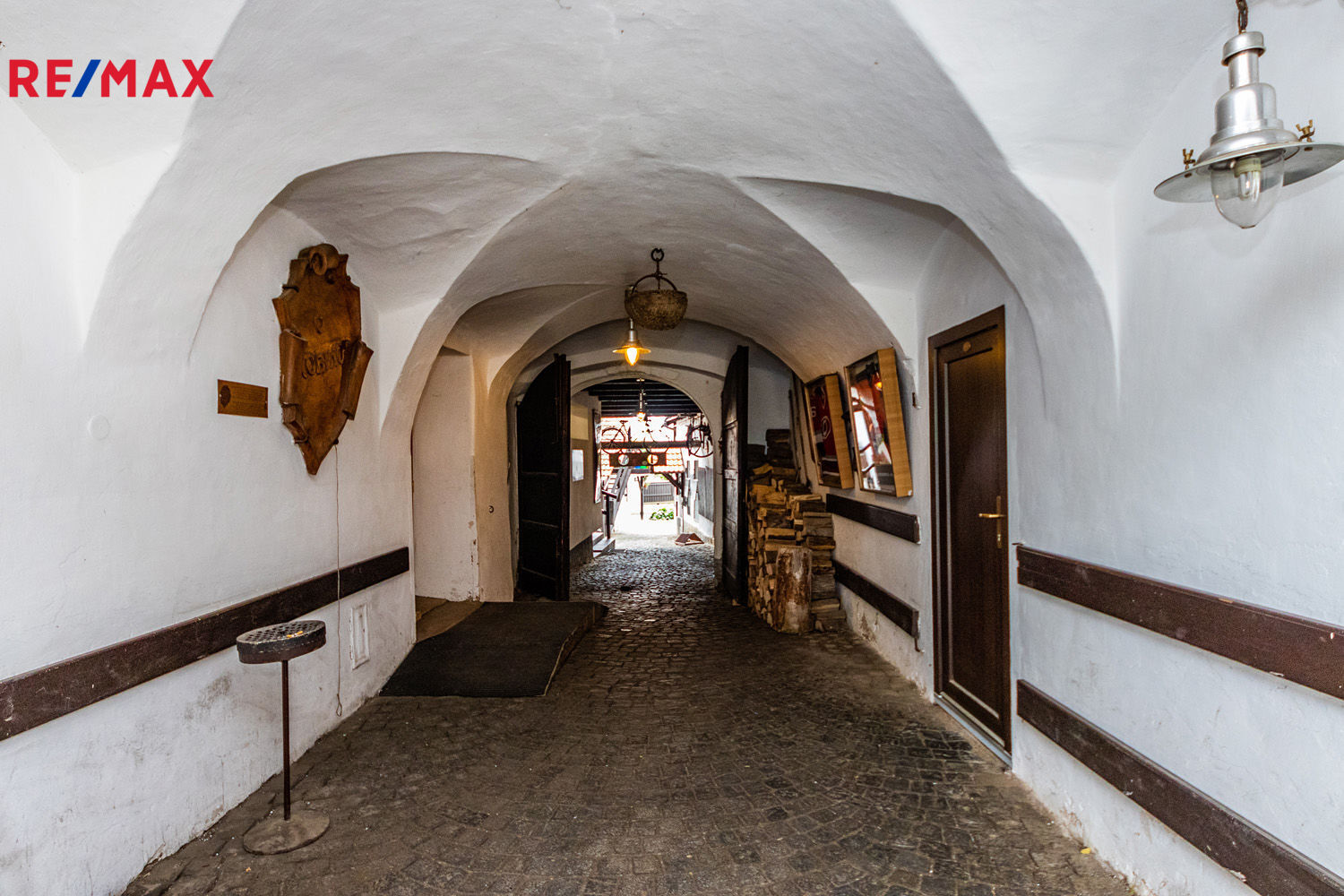 Suterén: 3x sklep (pivní pro restauraci, vinný a pro zahrádku s výtahem) + vlastní studna i vodárna + garáž 5x7m s výjezdem na ulici Vyšehrad (střecha z mědi)