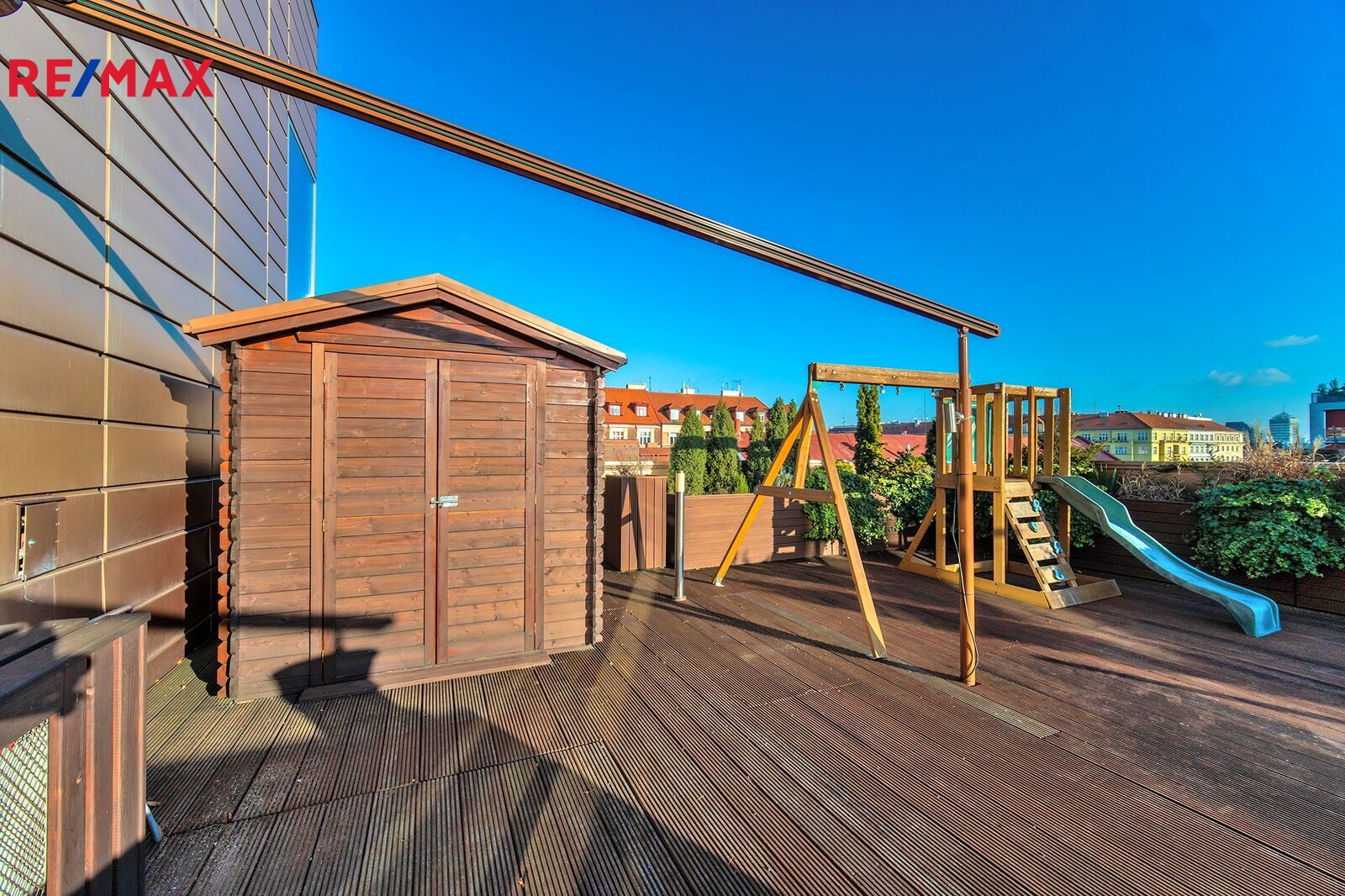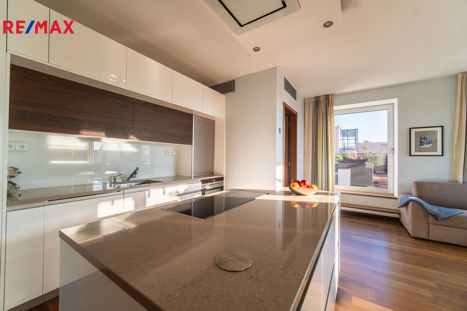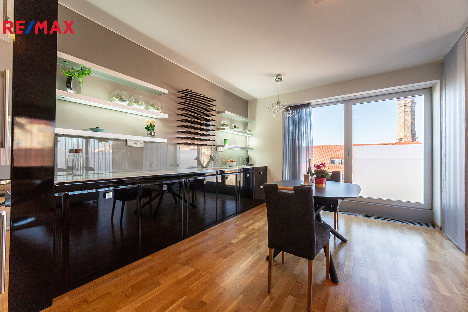 • Velkorysou terasu: Unikátní venkovní prostor orientovaný na východ, ideální pro relaxaci i společenská setkání s výhledem na panorama Vinohrad.