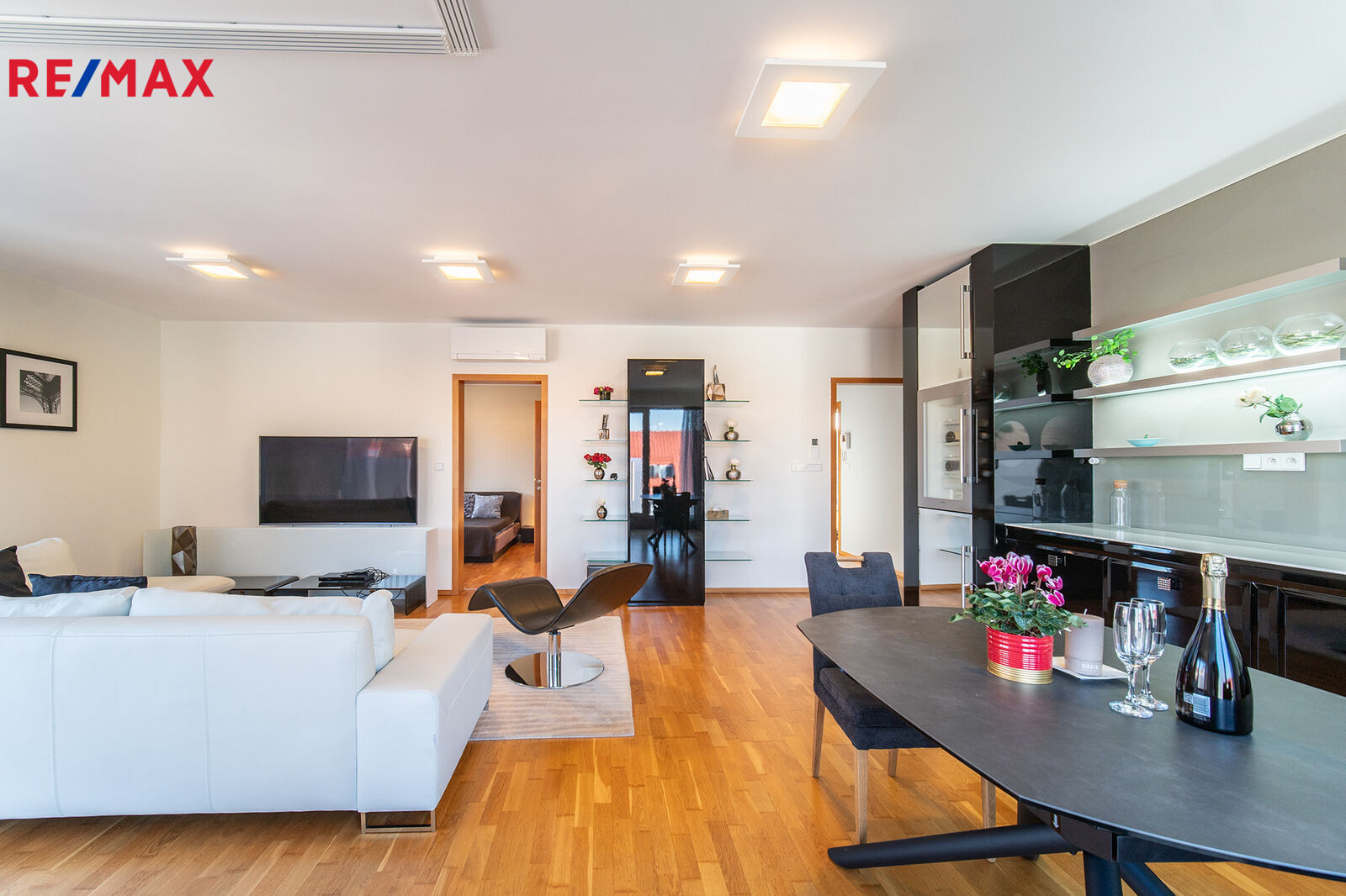 • Parkování a úložné prostory: K bytu náleží 2 parkovací místa v podzemní garáži a 2 sklepy.