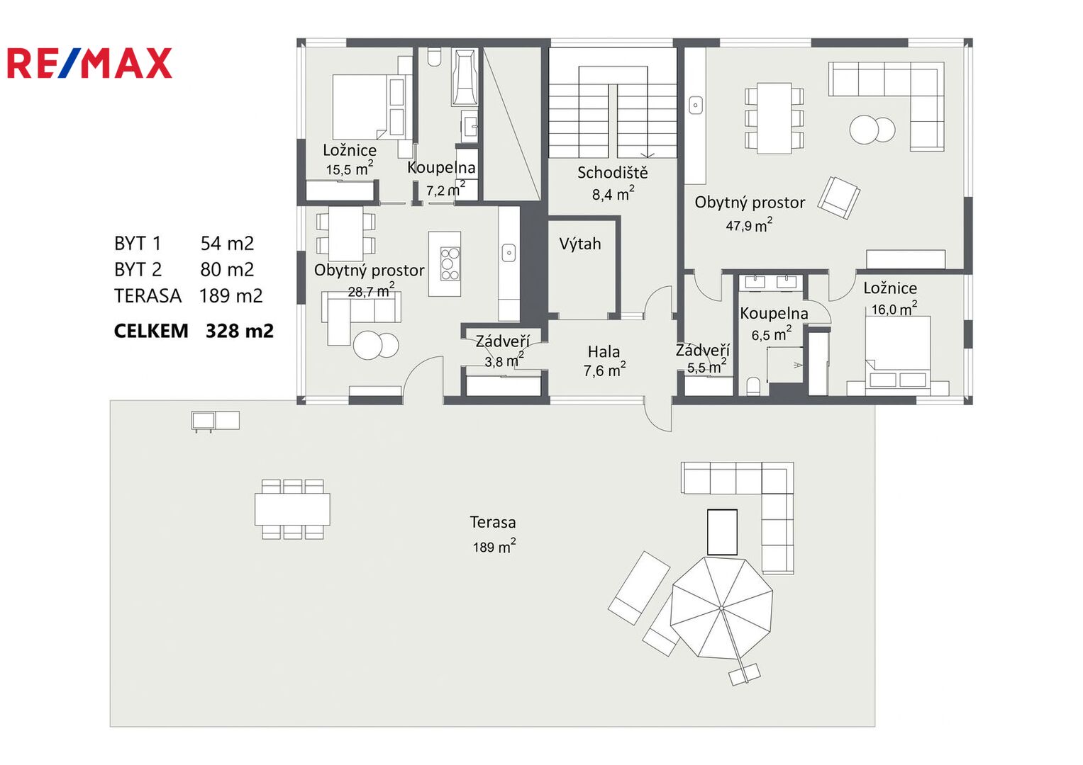 • Větší byt 2+kk: podlahová plocha 80 m²