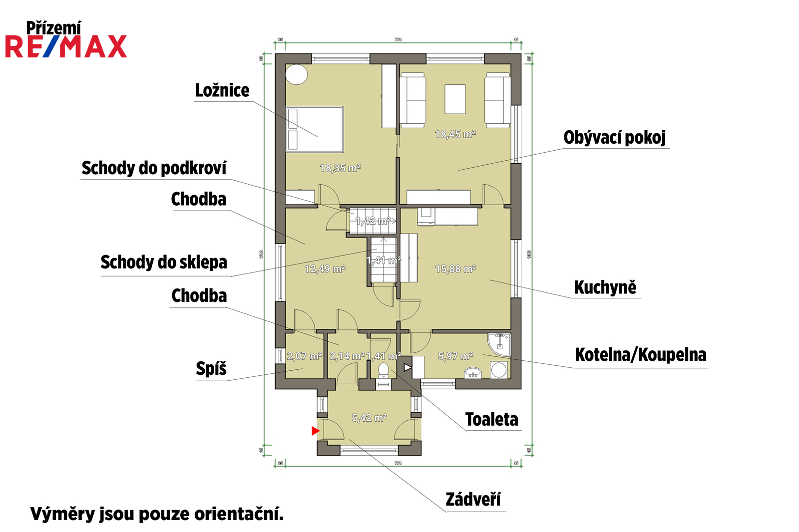 Dům disponuje celkovou plochou o výměře 103 m² + 74 m² půda - kterou lze využít k přestavbě například na samostatný byt nebo z ní utvořit další obytný prostor, k domu náleží i pozemek o výměře 1837 m². Tento pozemek nyní slouží jako zahrada ale dle územního plánu je veden jako stavební, tudíž je zde možnost zahájit výstavbu dalšího domu. Součástí prodeje je i garáž o výměře 22,5m², kůlna 17 m² a pergola s udírnou o 13,7 m². Dům se nachází na polosamotně, díky čemuž nabízí dostatek prostoru pro klidný a nerušený život.