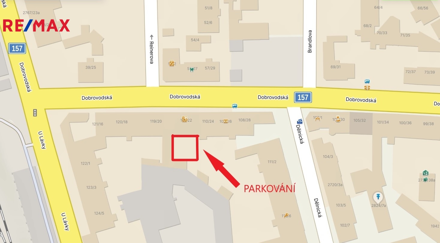 Jedno parkovací místo je v ceně pronájmu. Parkoviště se nachází na soukromém pozemku, za garážovými vraty.