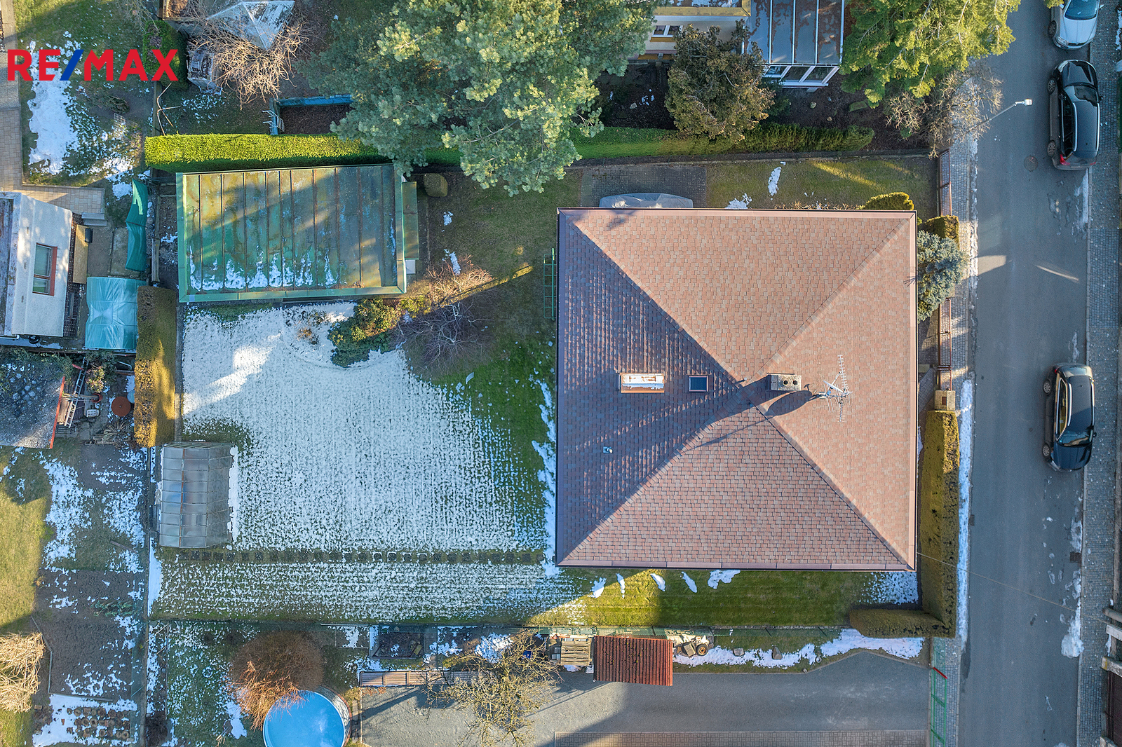 Na zahradě je další garáž s prostorem pro zahradní techniku a dílnu. Tento objekt je částečně podsklepen.