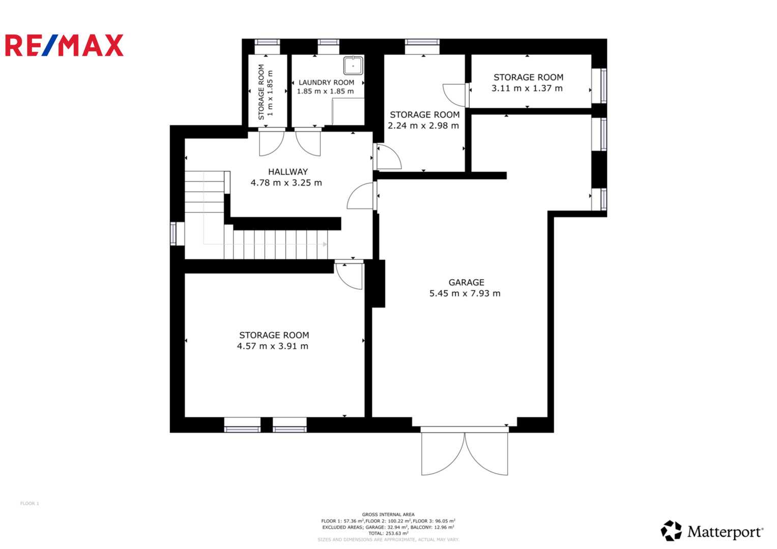 V podzemním podlaží domu (sklepě) je garáž na jeden automobil a další místnosti řešené jako prádelna a úložné prostory.