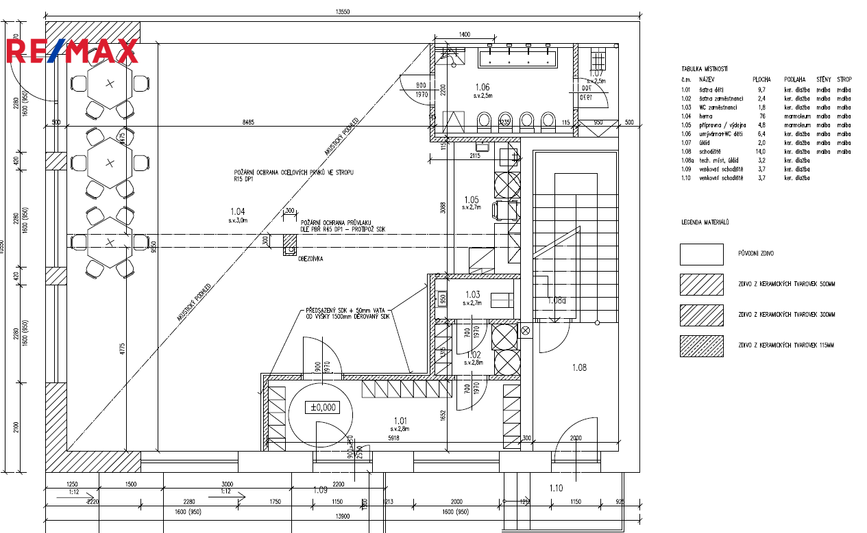 V návrhu je v přízemí velká dětská skupina s kapacitou 19 dětí vč. dětí pod 3 roky věku (od 1 roku věku). V prvním patře jsou 2 bytové jednotky 1kk a v podkroví je další jednotka (nebytový prostor - pracovna/ateliér s koupelnou a WC).