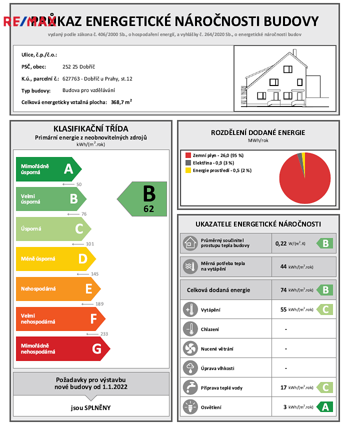 Vytápění objektu bude teplovodní s radiátory a kondenzačním kotlem na plynná paliva. Kotel je umístěný v technické místnosti pod schody. Příprava TUV bude probíhat výhradně v zásobníkovém ohřívači o objemu 250 litrů, napojeném na plynový kondenzační kotel. PENB B.