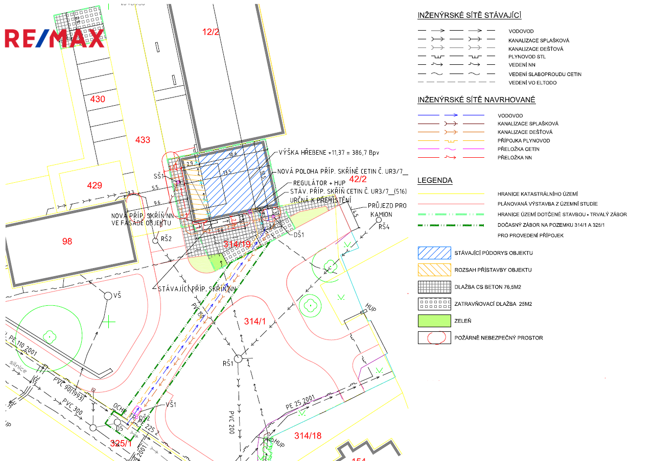 Pro objekt jsou navrženy nové přípojky vody, kanalizace, plynu.