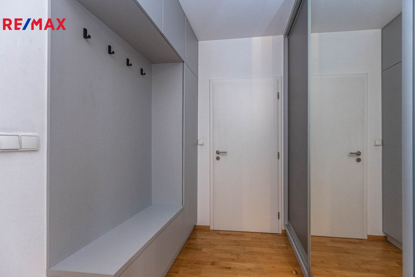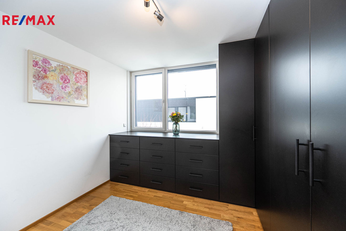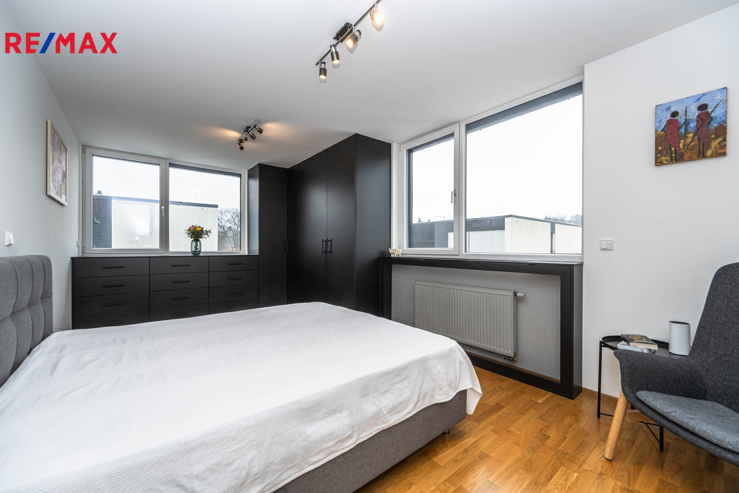 Rodičovská ložnice je kompletně zařízená manželskou postelí a sestavou vestavěných skříní, v pracovně se nachází kompletní office set. V další ložnici i pracovně možnost dvojlůžka. Nábytek lze po dohodě s majiteli doladit dle představ nájemce.