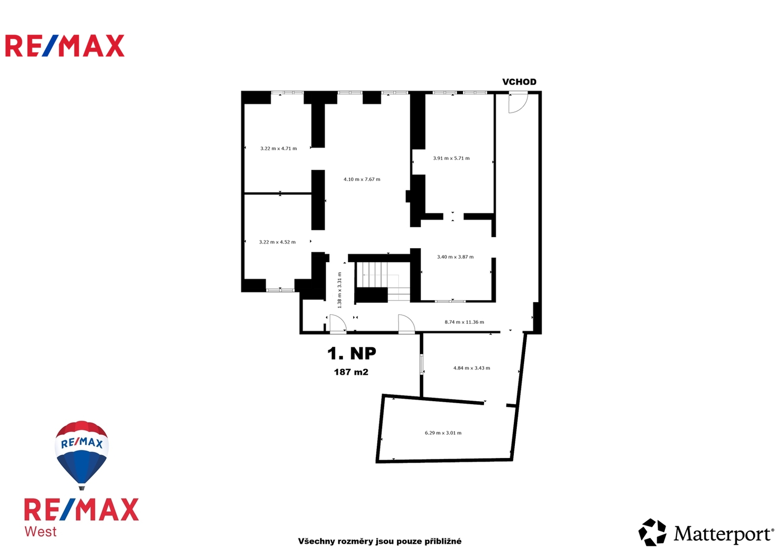V 1. NP naleznete 7 místností (187 m2), ve 2. NP 4 místnosti (140 m2) a otevřené podkroví (165 m2). Dům tak nabízí možnost vybudovat 6 bytových jednotek/ apartmánů nebo např. 4 apartmány s restaurací v 1. NP. Zajímavým prvkem domu je i terasa nad přístavbou, přístupná z chodby ve 2. NP.