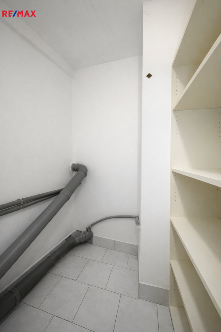 2. NP: garsoniéra + zázemí pro personál, malý sklad a velký sklad (lze přestavět na plnohodnotnou kuchyň)