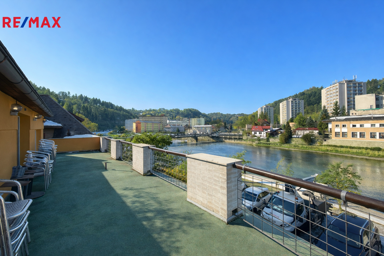 3. NP: restaurace, kavárna, bar s přímým vstupem na terasu s výhledem na řeku a centrum města, WC pro hosty, přípravna