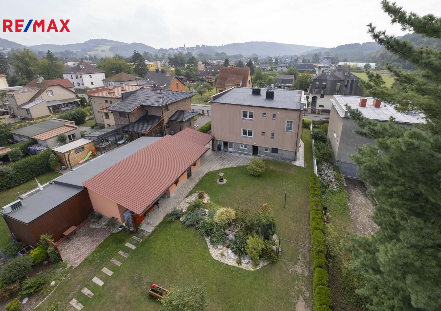 Prostorná zahrada zajišťuje klidné a relaxační podmínky pro rodiny s dětmi. Vkusně upravená se zahradním domkem a skleníkem, což poskytuje další možnosti relaxace, pěstování zeleniny a ovoce , případně grilování s přáteli.