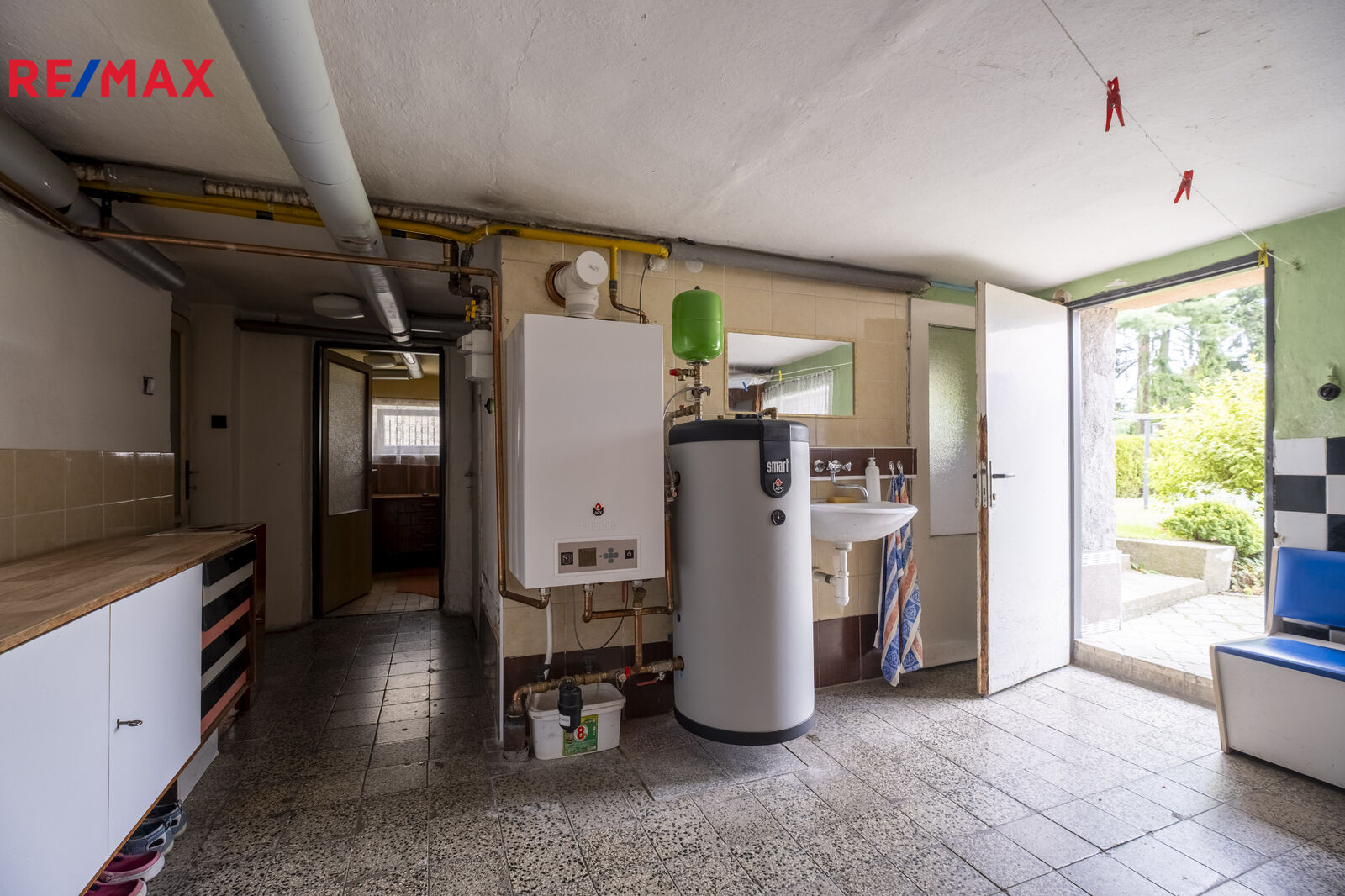 K nemovitosti patří také prostorný suterén s plochou 80 m², který nabízí další možnosti využití, jako například úložný prostor nebo dílnu. Na pozemku nechybí garáž a další parkovací místo pro automobil. Odpad je řešen kanalizací a jímkou, k domu je přiveden vodovod a retenční nádrž na dešťovou vodu. Na pozemku najdeme i vlastní studnu.