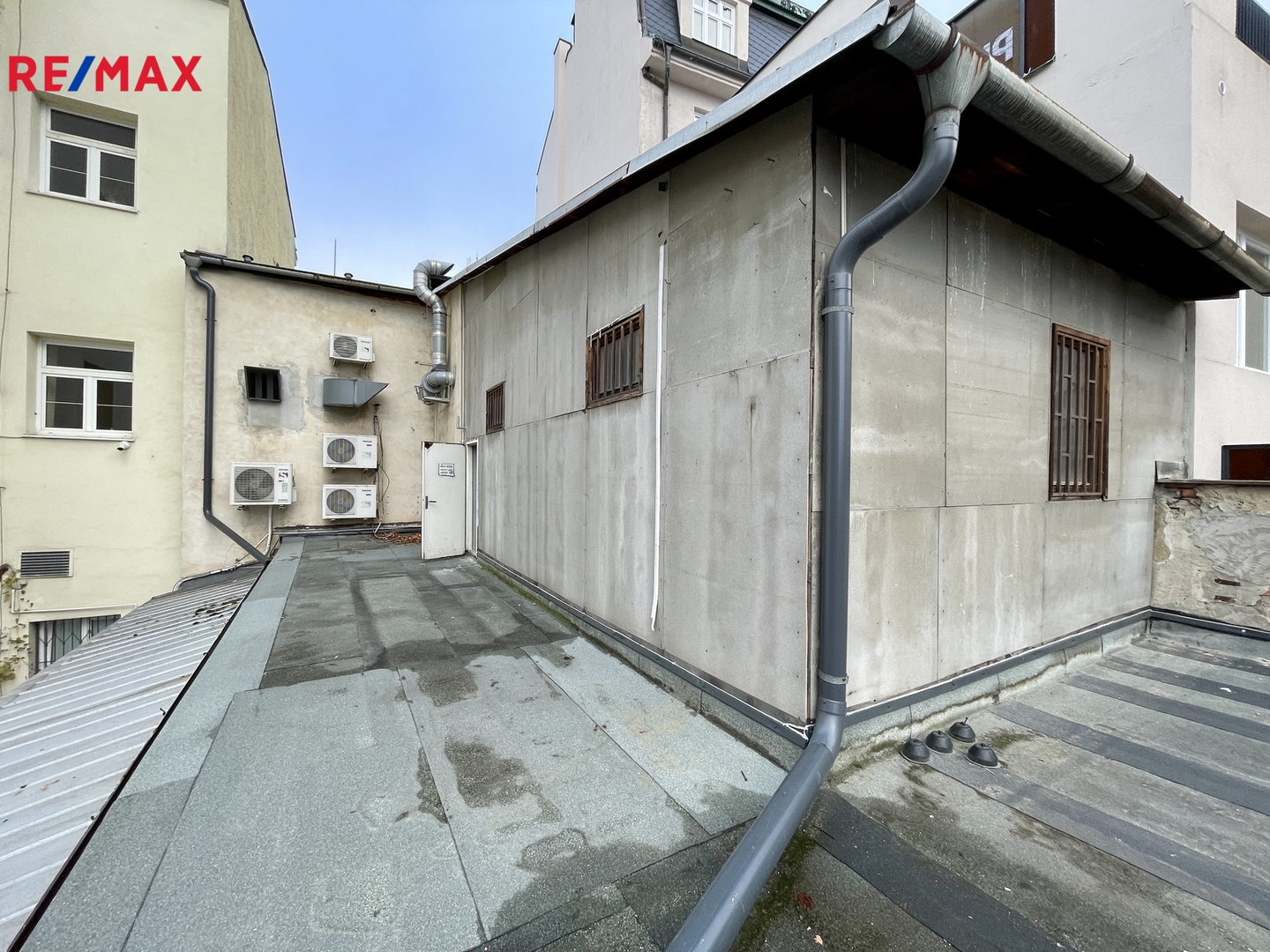 Budova je vybavena vzduchotechnikou a klimatizací. Za objektem se nachází pozemek vhodný k parkování až šesti vozidel, přičemž jednotlivá parkovací stání lze pronajmout za 2 000 Kč + DPH měsíčně.