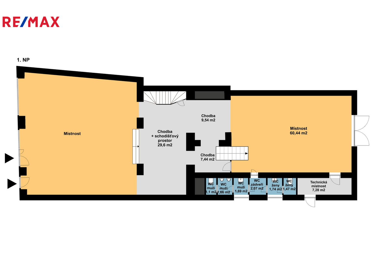 Nemovitost nabízí atraktivní polohu a flexibilní možnosti využití pro různé typy podnikání. Fotografie v inzerci obsahují vizualizace, které slouží pouze k ilustračnímu znázornění možného budoucího využití prostoru.