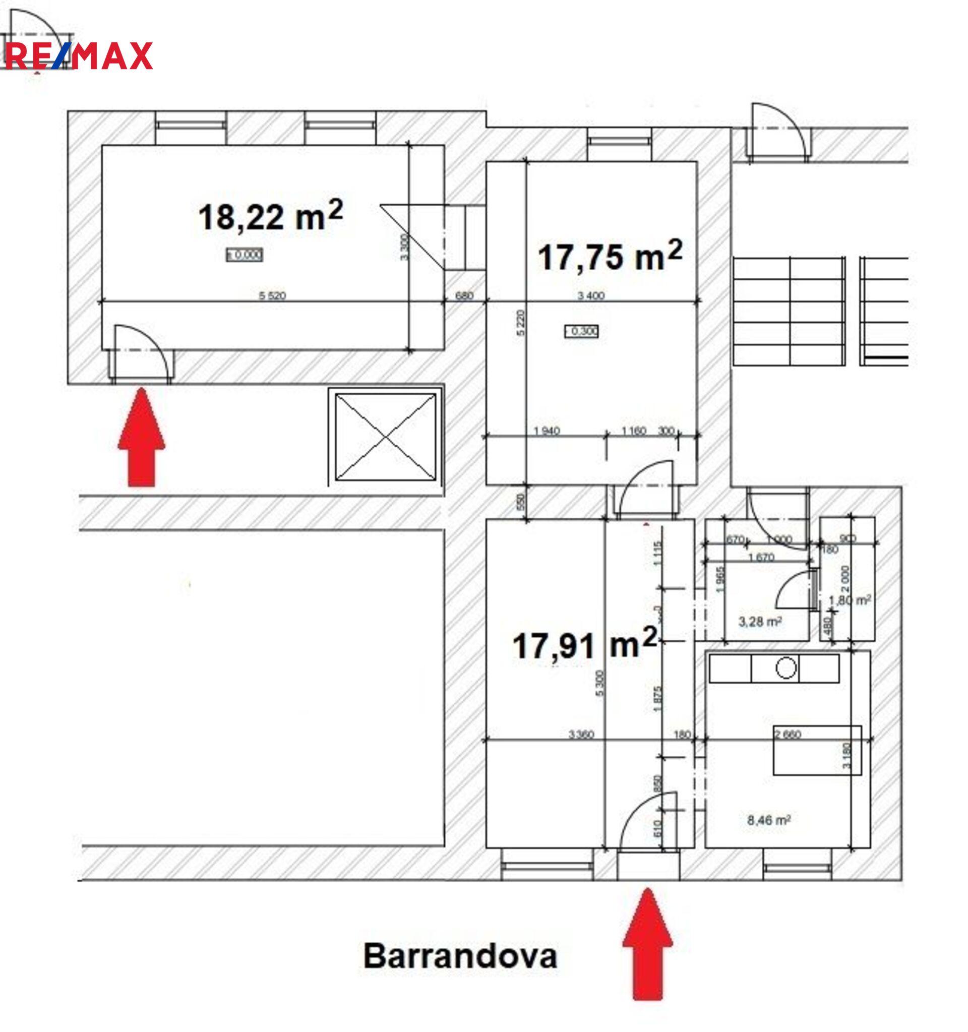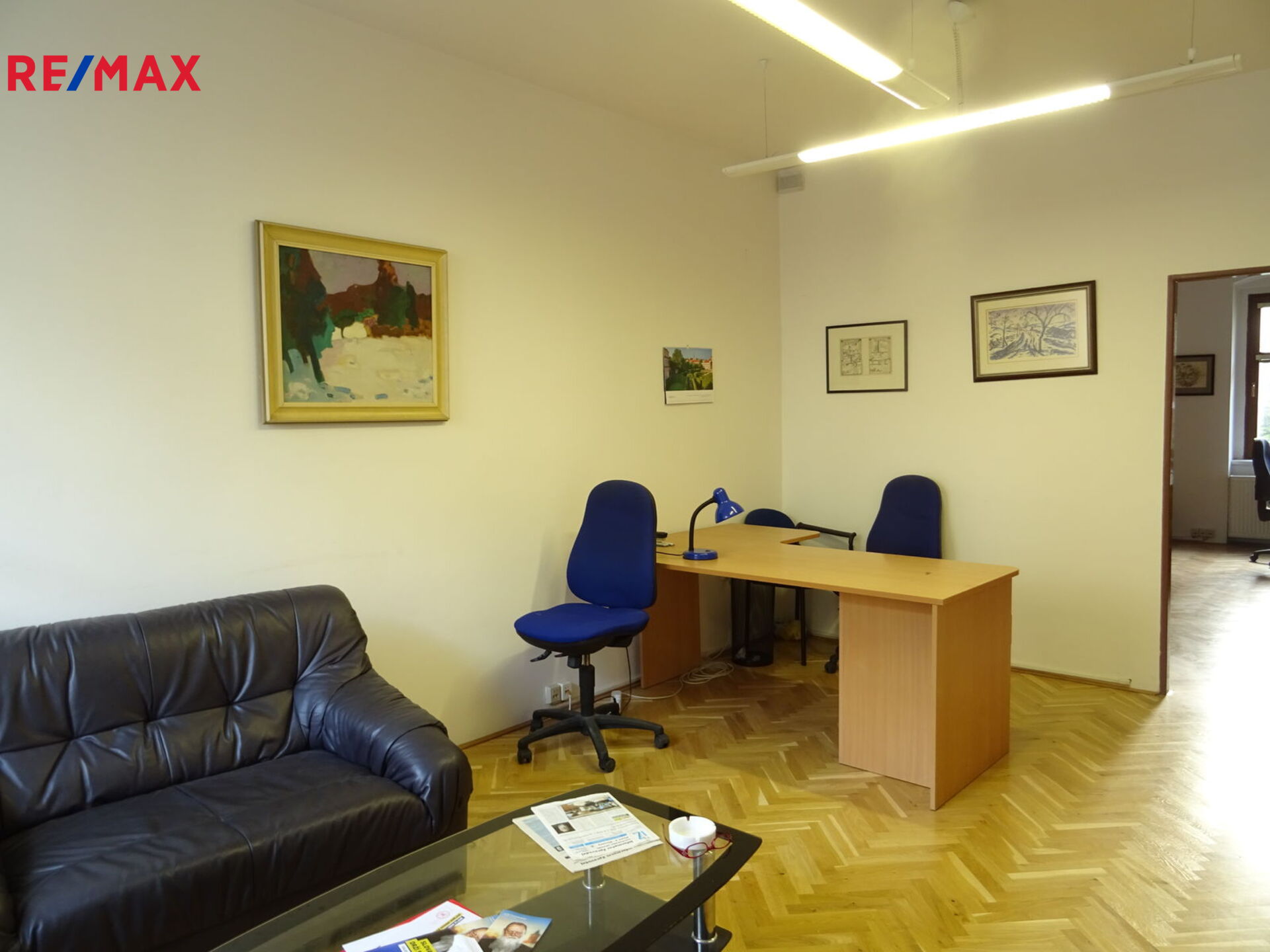 Kanceláře (18,22 m2; 17,75 m2 a 17,91 m2) se nachází v přízemí zrekonstruované kancelářské budovy s výtahem. Vstup do nich je možný z budovy nebo z ulice, ale mají i přístup na malou zahrádku ve vnitrobloku. Jejich dispozice je patrná z přiloženého plánku. Pronajímají se částečně vybavené kancelářským nábytkem - administrativní skříně. Jejich součástí je sociální zázemí a kuchyňka.
