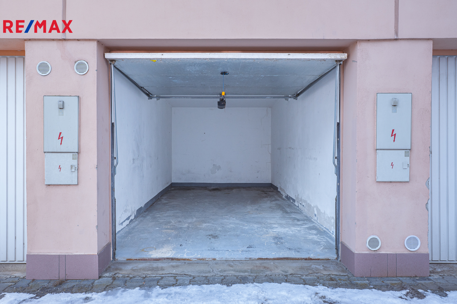 Garáž má celkovou výměru 15,65 m² (délka 5,6 m, šířka 2,8 m) a je přístupná přímo z veřejné komunikace. Je napojena na elektrickou síť a vybavena elektrickými vraty.
