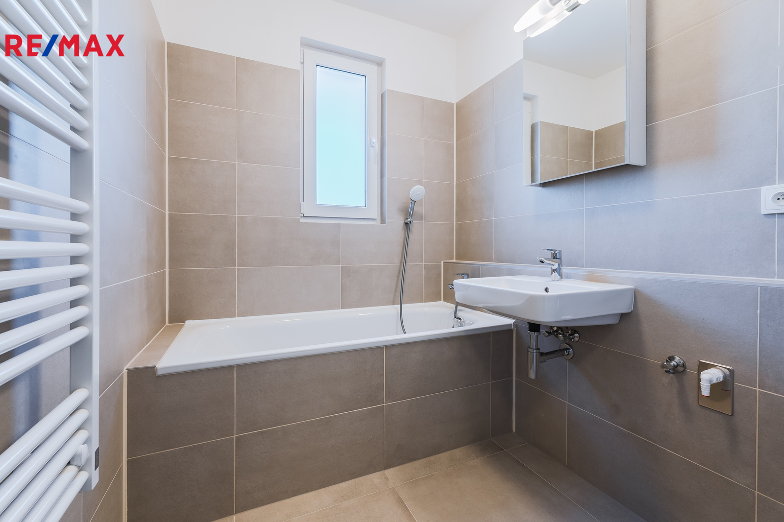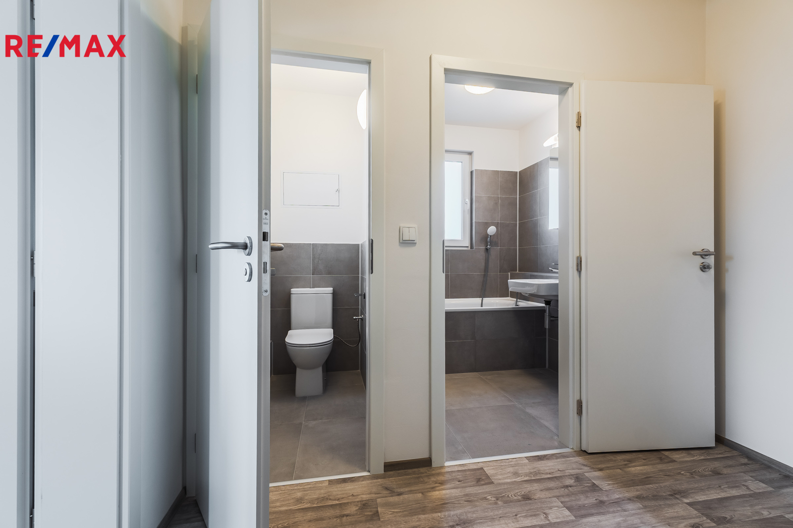 Dále je zde koupelna s vanou a přípojkou na pračku a samostatné WC.