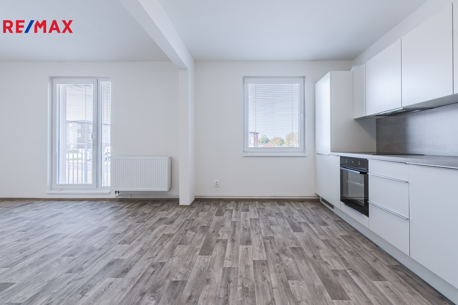 Dispozici tvoří obývací pokoj s kuchyňskou linkou zn. Oresi vybavenou vestavěnými spotřebiči (lednice s mrazákem, indukční varná deska, myčka 45 cm, elektrická trouba, mikrovlnná trouba a digestoř s odtahem). Z obývací části je přímý vstup na balkon.