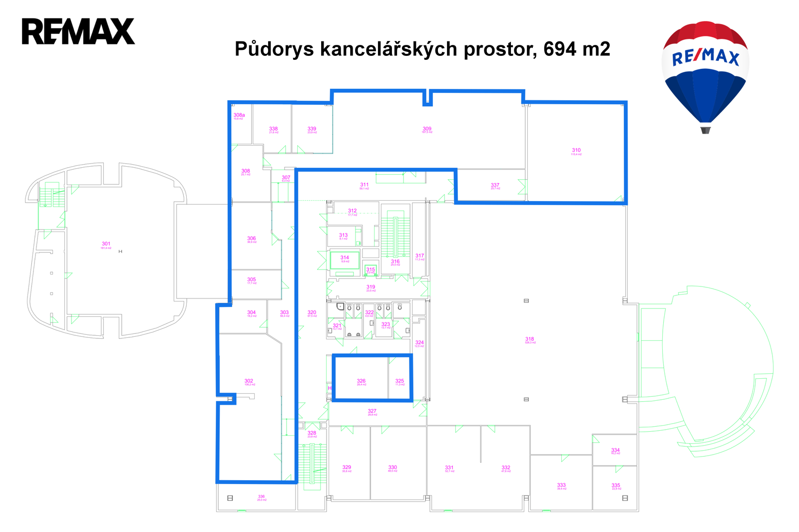 Plocha kanceláří: