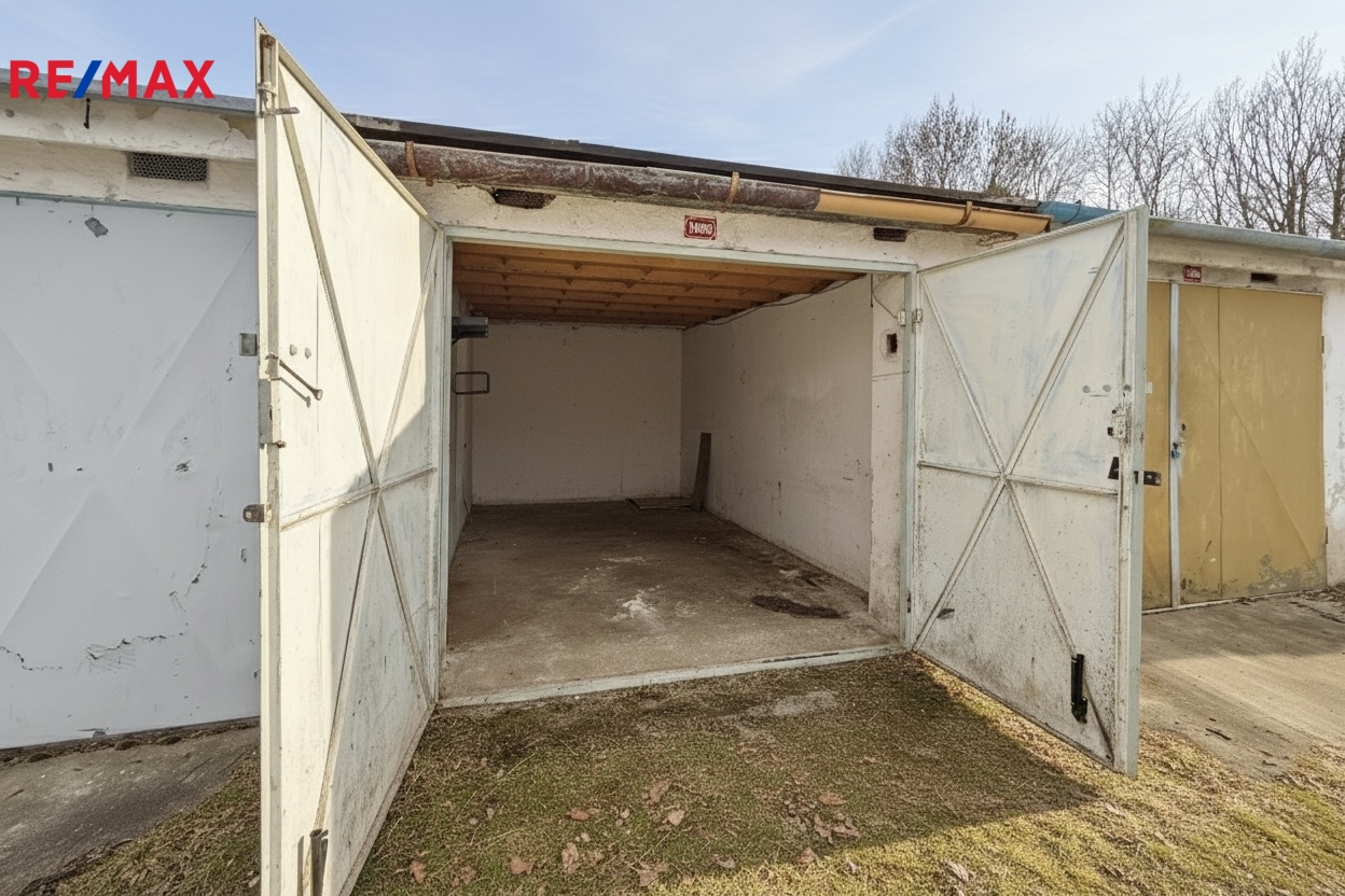 Jedná se o garáž ve velmi dobrém technickém stavu, která je postavena ze zděného materiálu a je osazena plechovými vraty. Velkou výhodou je zavedená elektřina, díky které je garáž vhodná nejen k parkování osobního automobilu, ale také ke skladování nebo drobné údržbě.