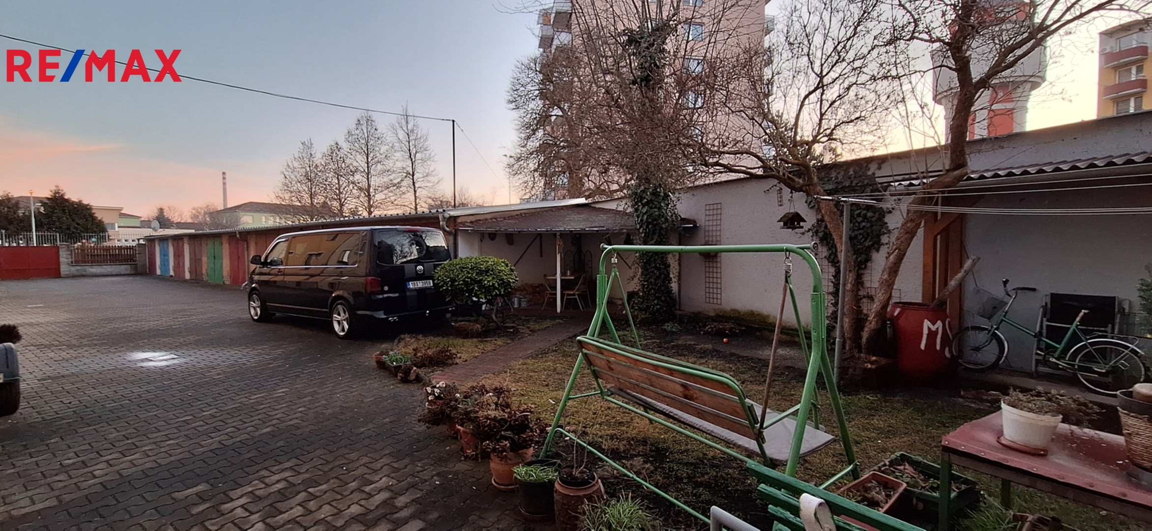 K bytu náleží prostorný sklep (16 m2) a společný dvůr s garážemi (jedna garáž patří k bytu a je součástí prodeje). Parkování dále možné u domu a nebo za domem. Dvůr je uzamykatelný, je zde brána.