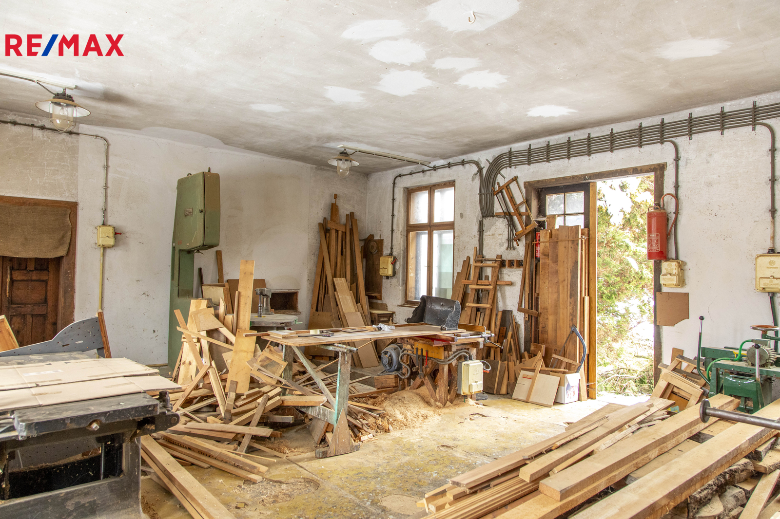 Součástí pozemku o rozloze 1.759 m² je také vedlejší budova se zastavěnou plochou 170 m², která dříve sloužila jako stolařská dílna. Tato stavba nabízí široké možnosti využití - např. pro skladování, řemeslnou výrobu nebo lze objekt přestavět na bydlení.