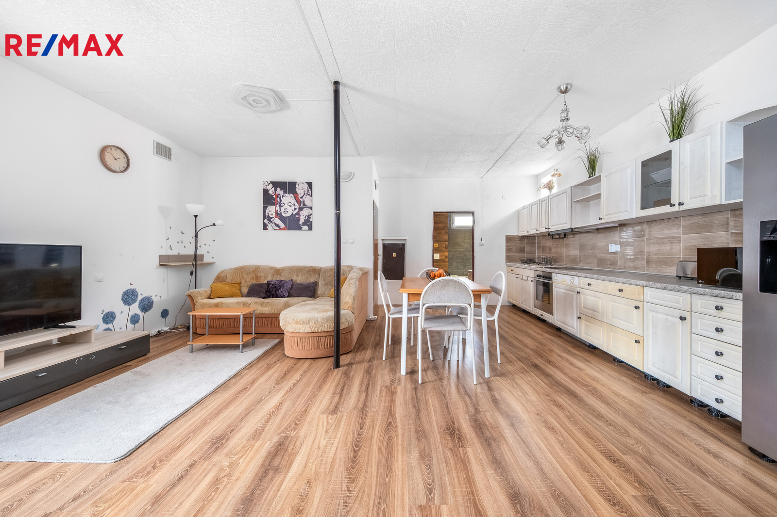 Samotná dispozice je velmi prakticky členěna na hlavní klientskou zónu s kuchyňským koutem a dvě samostatné uzavřené místnosti, které poskytují dokonalé soukromí pro administrativu, sklady nebo individuální služby.