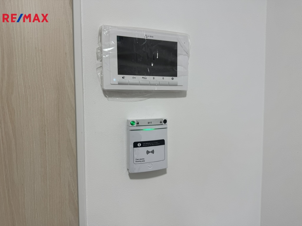 Vytápění bytu a ohřev teplé vody zajišťuje centrální kotel v domě. Vytápění v celém bytě je podlahové. V bytě je instalovaný zabezpečovací systém Jablotron s možností kódování čipem. Možnost připojení k internetu.