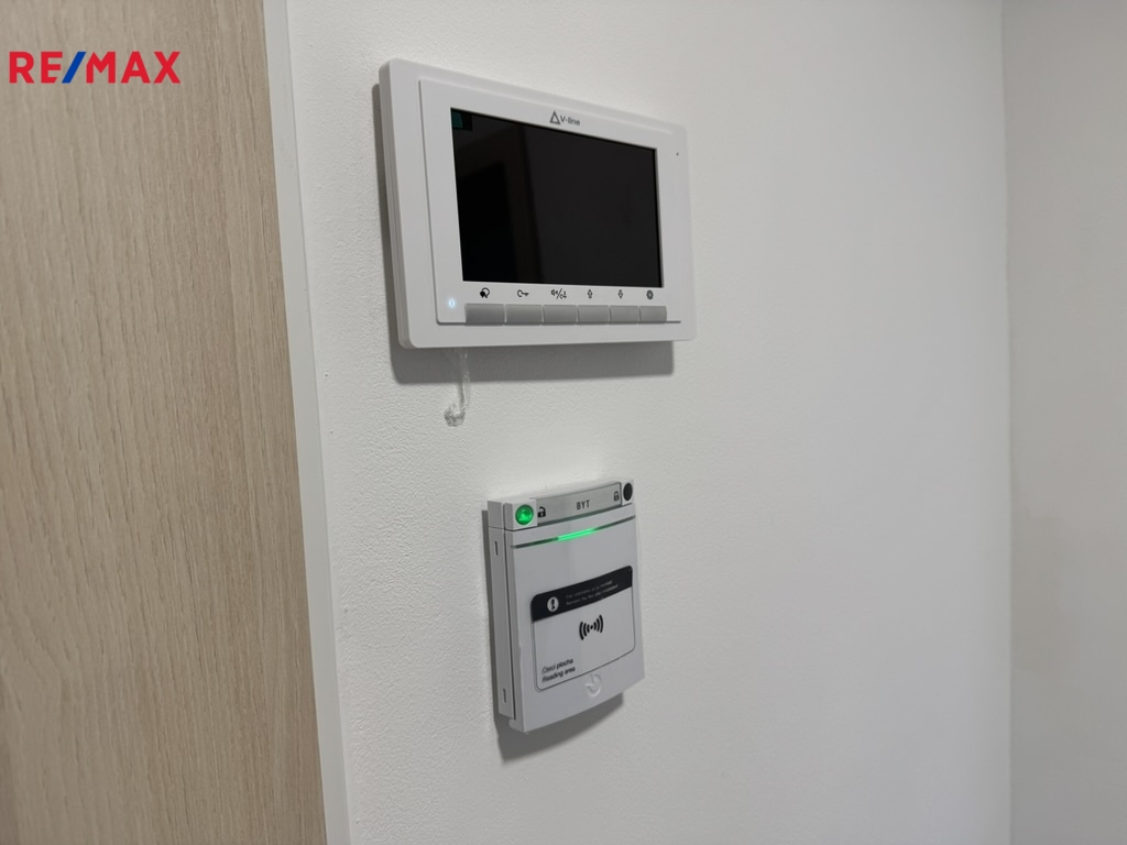 Vytápění bytu a ohřev teplé vody zajišťuje centrální kotel v domě. Vytápění v celém bytě je podlahové. V bytě je instalovaný zabezpečovací systém Jablotron s možností kódování čipem. Možnost připojení k internetu.
