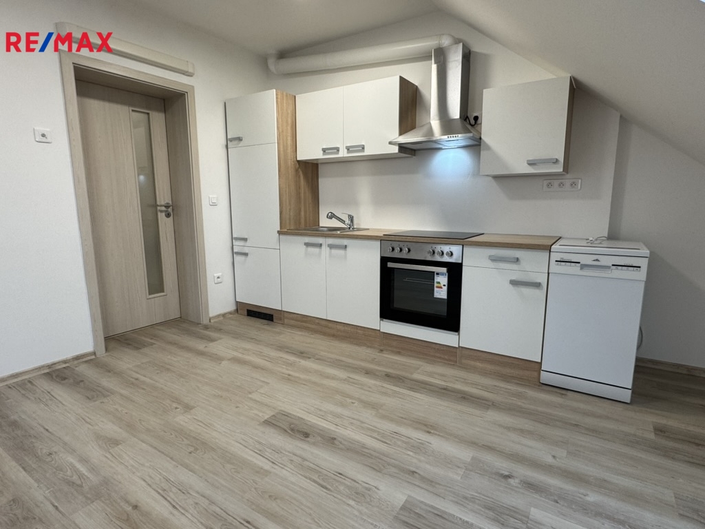 Dispozici bytu tvoří vstupní chodba, koupelna se sprchovým koutem, umyvadlem, WC a místem na pračku, kuchyňský kout s místem na jídelní stůl, obývací pokoj a samostatná ložnice. Kuchyňská linka je vybavena vestavěnou lednicí, myčkou, varnou deskou, digestoří a horkovzdušnou troubou.