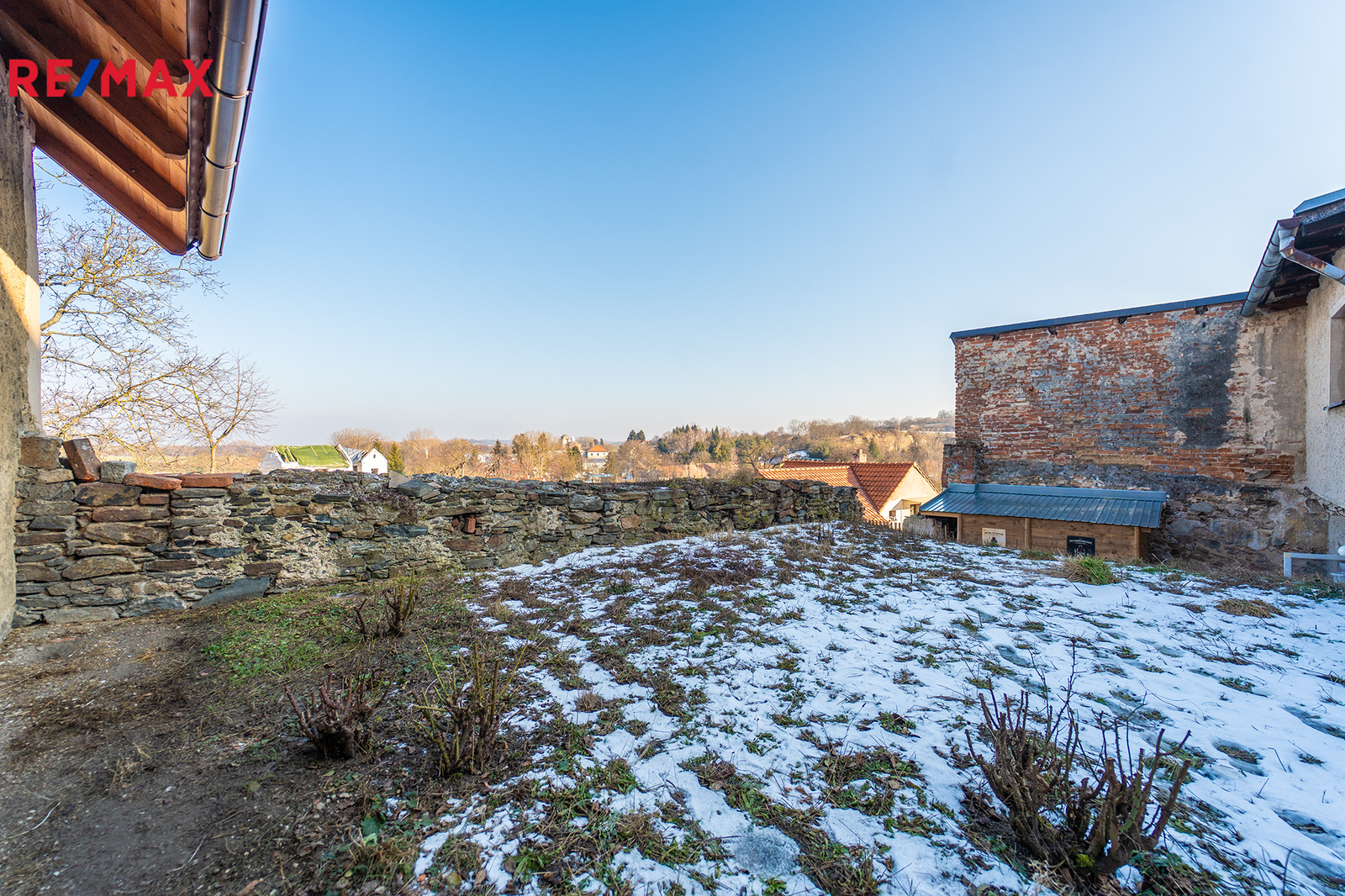 S domem můžete užívat také menší zahrádku s krásným výhledem, která může sloužit jako místo pro hraní dětí, rodinné posezení nebo klidný odpočinek po náročném dni.