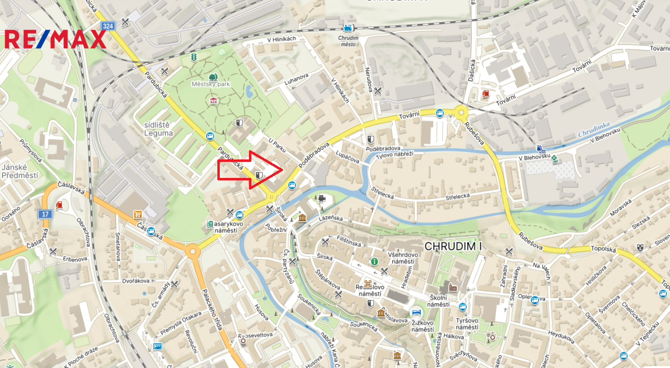 Zděná garáž k pronájmu stojí v uzavřeném dvoře domu č.p. 68 v Poděbradově ulici, Chrudim.