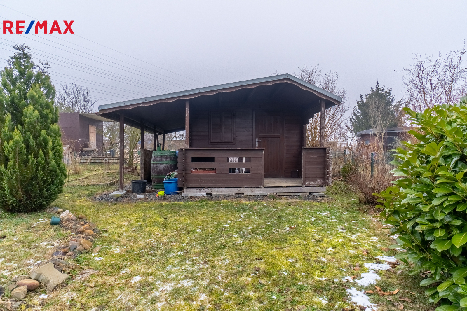 dřevěná stavba sloužící jako zázemí pro uskladnění nářadí a vybavení