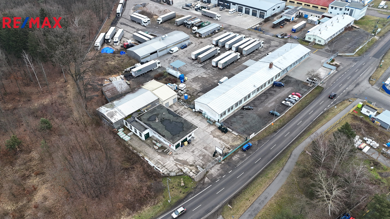 Dispozice: 4 propojené haly (2 zděné, 2 montované z ocelových nosníků s plechovou střechou)