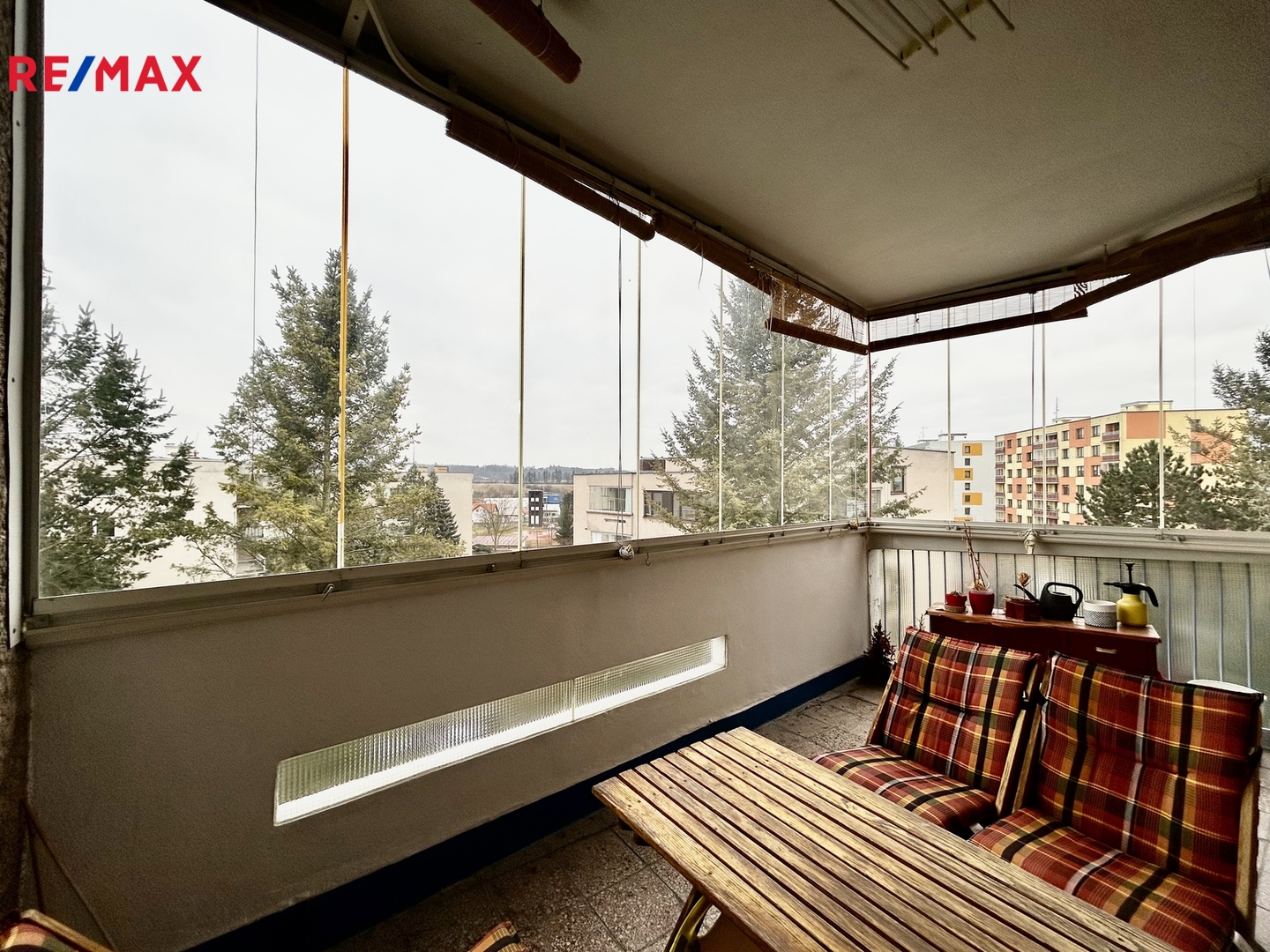 Celková plocha bytu činí 83 m². Kuchyň o velikosti 8.8 m2, obývací pokoj 22,15 m2, pokoj 14 m2, ložnice 10,5 m2, chodba 8,5 m2, koupelna 3,14 m2, WC 1,30 m2, komora 1,40 m2 a prostorný zasklený balkon 9 m2. V obývacím pokoji a v ložnici jsou dřevěné parkety v perfektním stavu, zbytek podlahové krytiny tvoří lino a dlažba. V obývacím pokoji je možnost instalace krbu. Příjemně vás překvapí prostor, který je k dispozici, a dostupnost dvou sklepních prostor o velikosti 6 m², ideální pro uložení potřebného vybavení nebo sezónních předmětů. Dále jsou k dispozici dvě kolárny, sušárna a prádelna.
